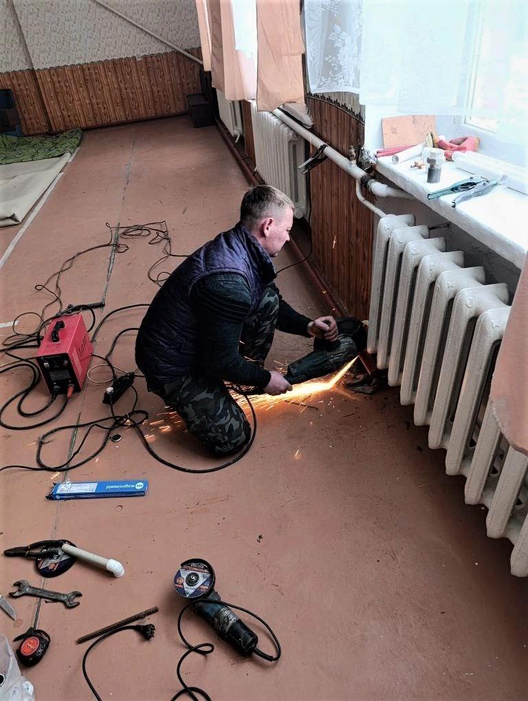 Уже ведется монтаж радиаторов и установка дополнительно сваренных регистров в учебных помещениях.