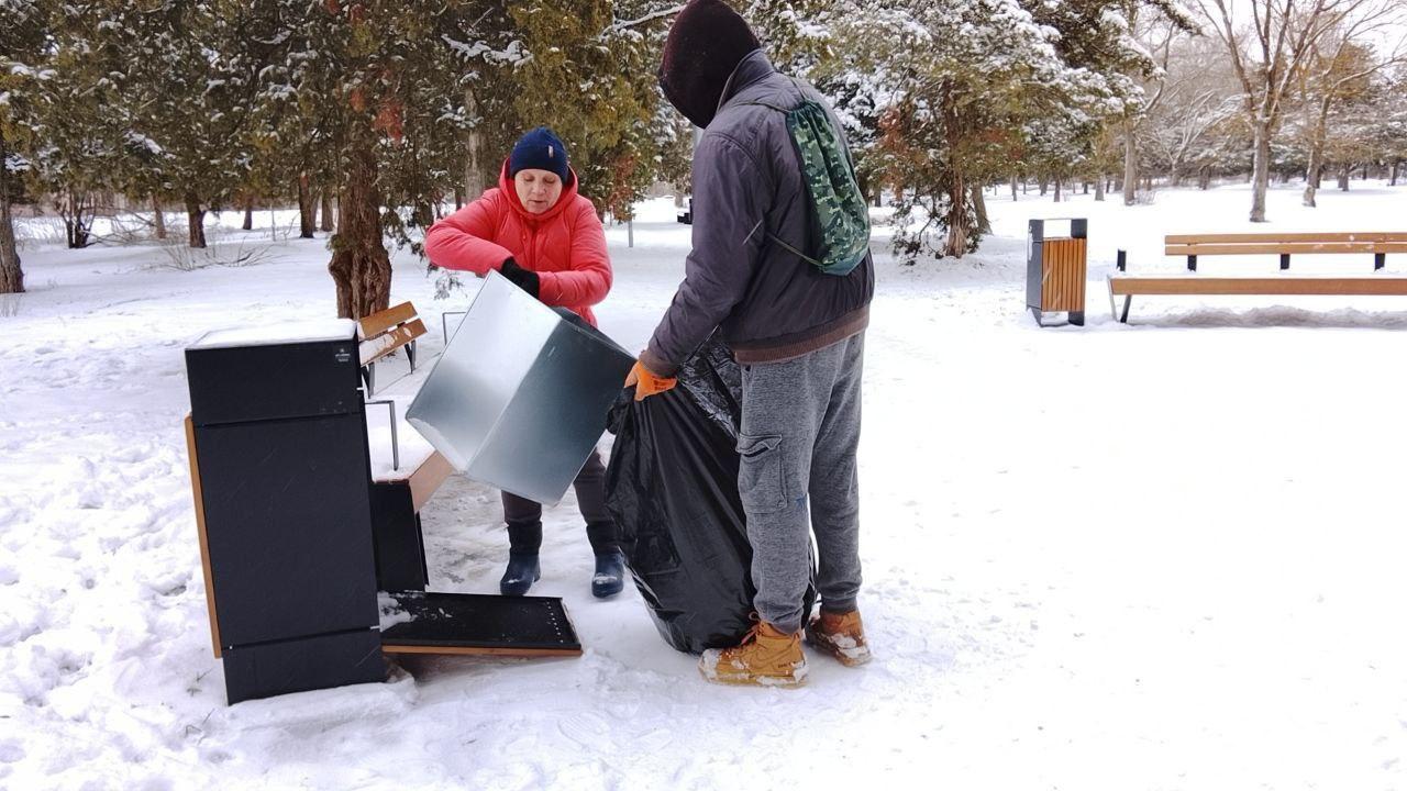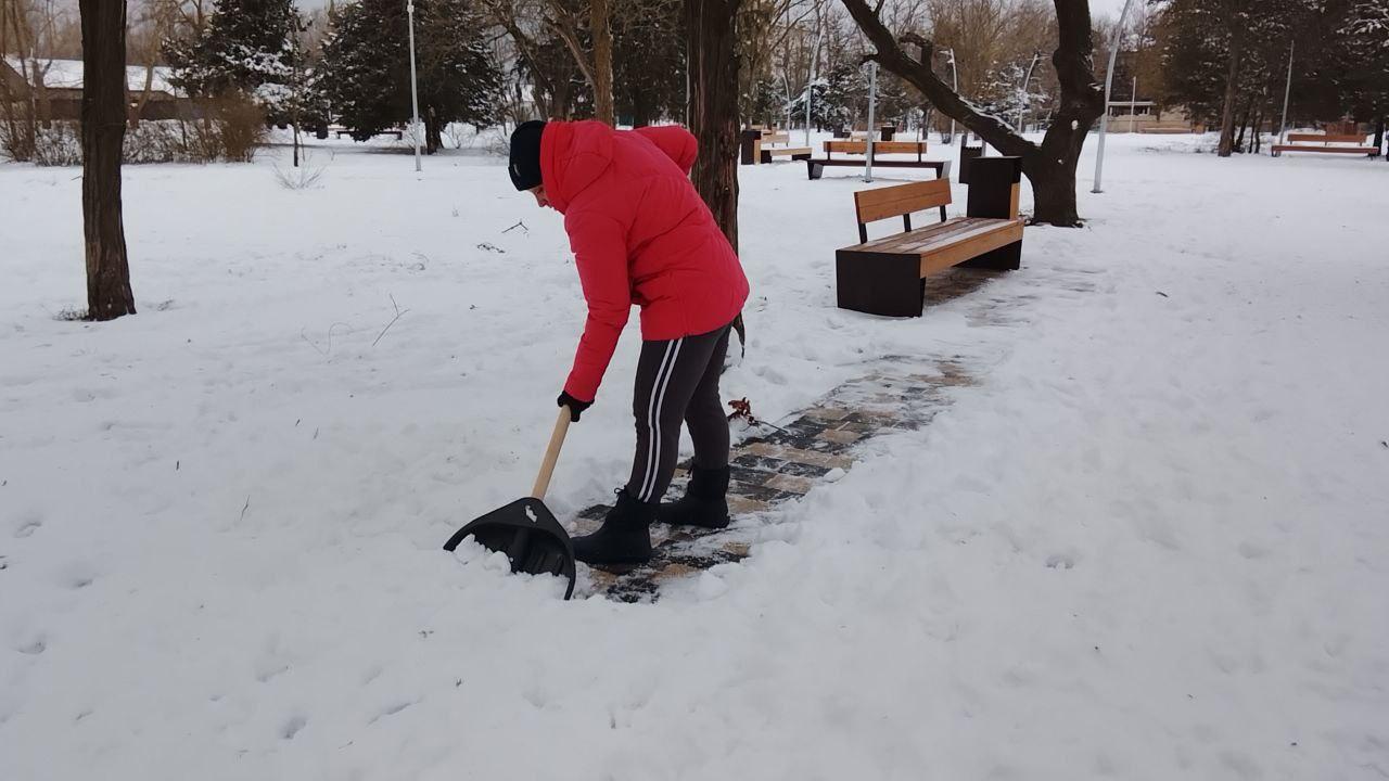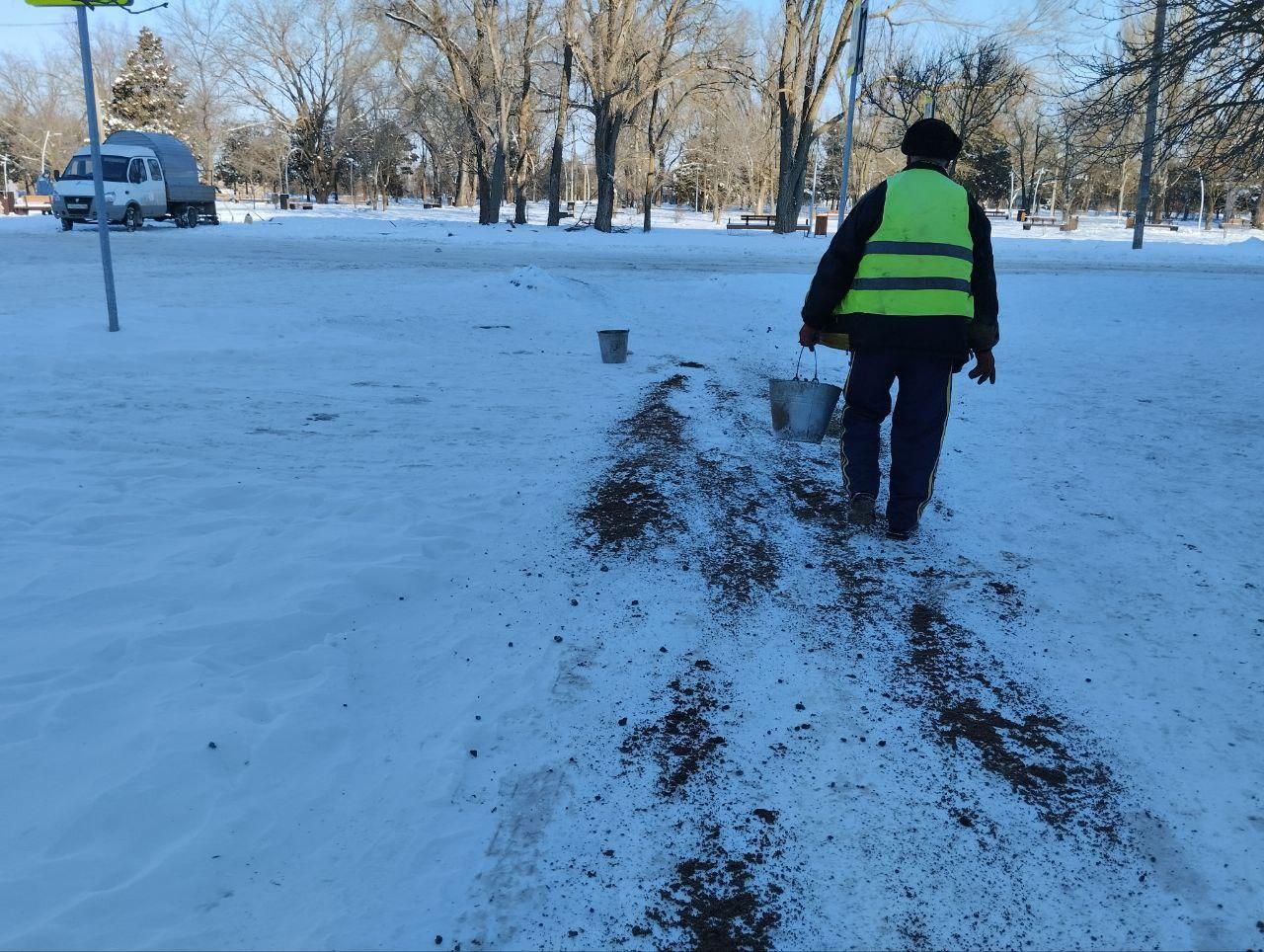 Так, сотрудники учреждения очистили от снега и посыпали противогололедными смесями пешеходные дорожки в сквере «Молодежный» и тротуары в центре Скадовска.