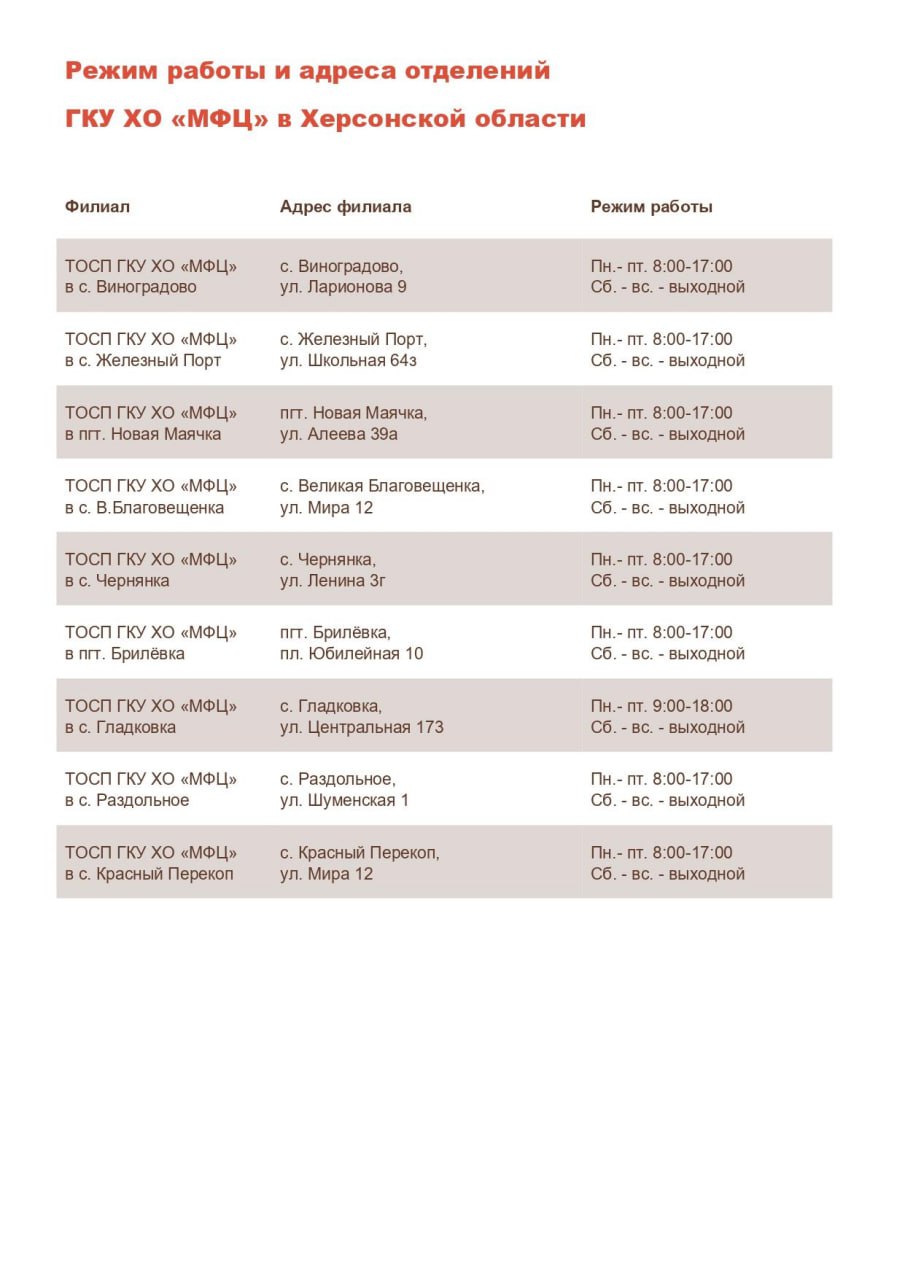 Актуальные адреса и график работы всех отделений МФЦ Херсонской области