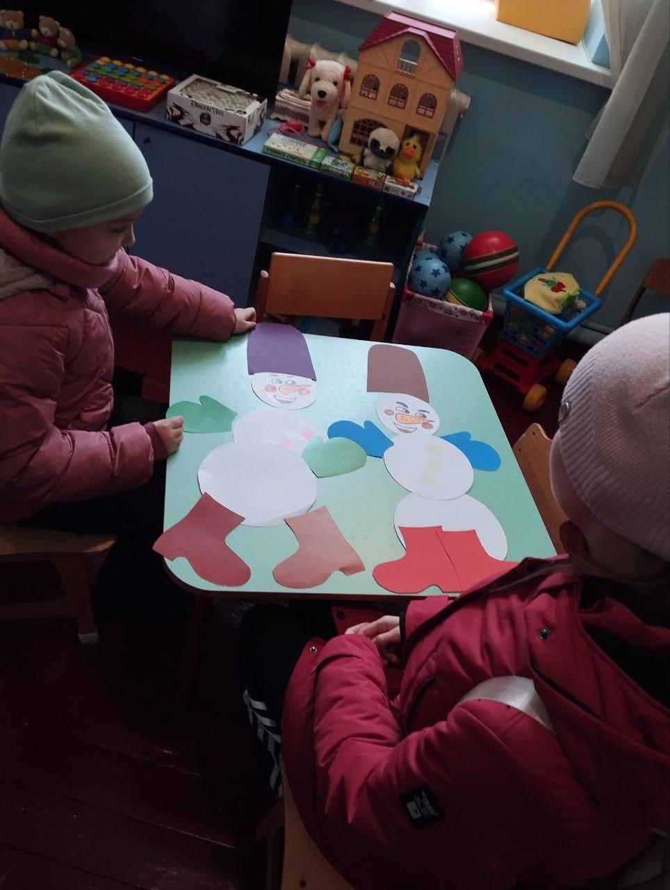 Кроме этого, за короткое время было предложено собрать макет картонного снеговика на скорость. Дети с удовольствием и радостью выполняли задания.