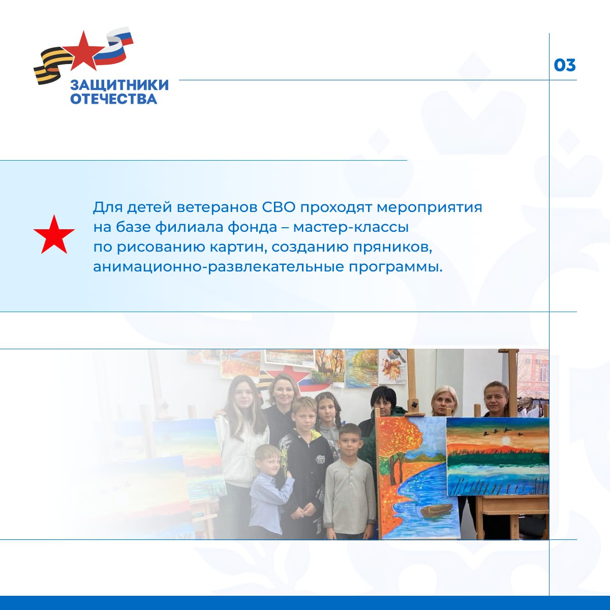 Подробнее о работе филиал фонда «Защитники Отечества» — в карточках.