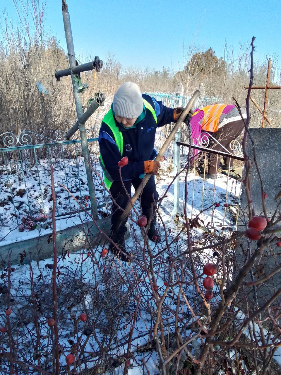 с. Рыково: Удаление дикой поросли и наведение порядка на территории кладбища.