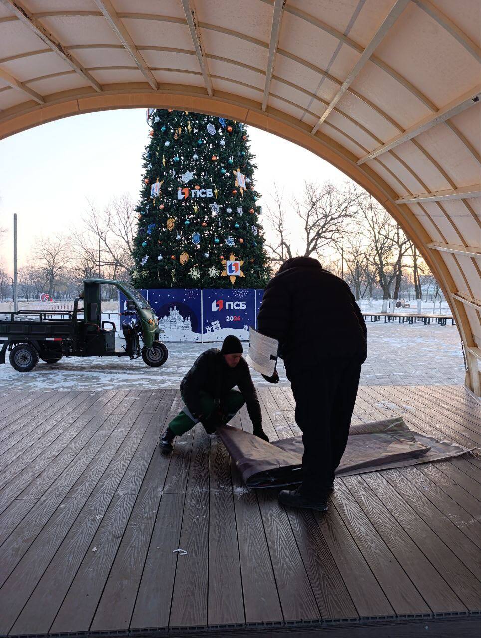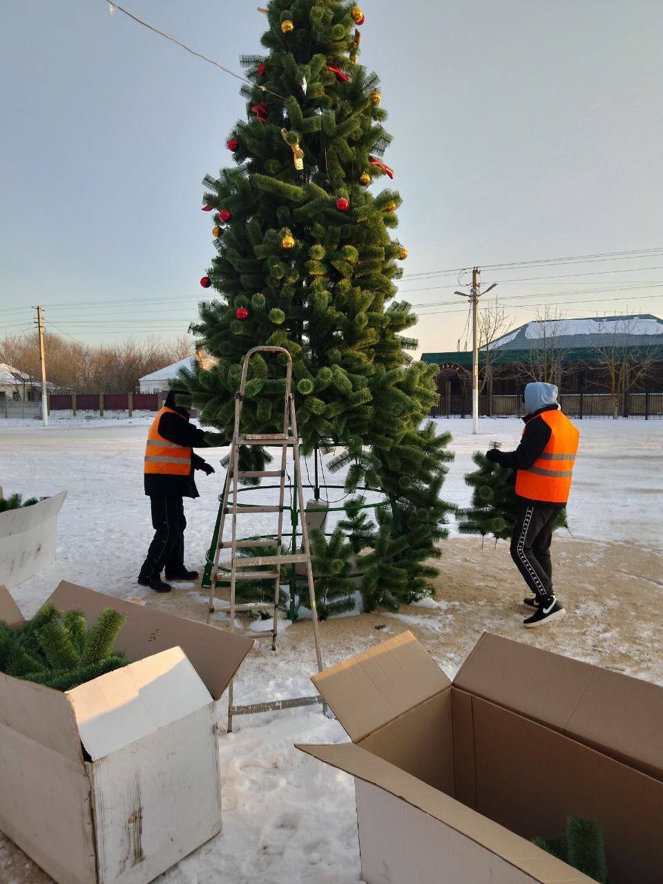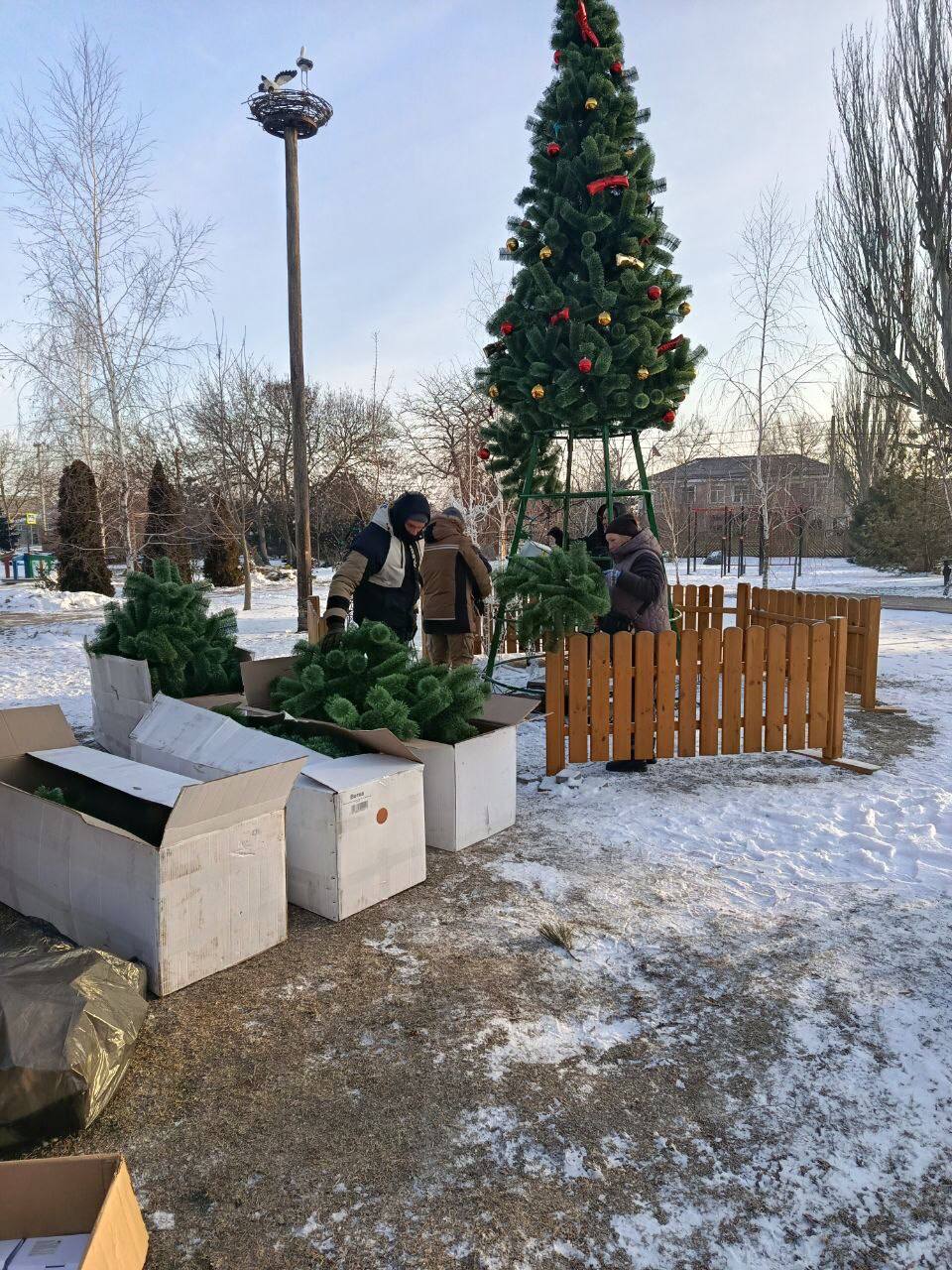 с. Счастливцево: Уборка снега и мусора на рынке и прилегающей территории, демонтаж новогодней ёлки.