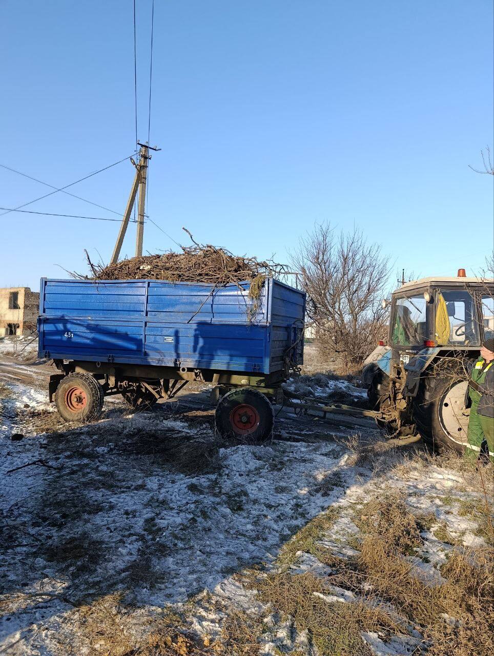пгт. Новоалексеевка: Расчистка тротуаров (вывезено 11 м мусора), адресная доставка дров семье участника СВО, спил аварийных деревьев и обрезка веток.