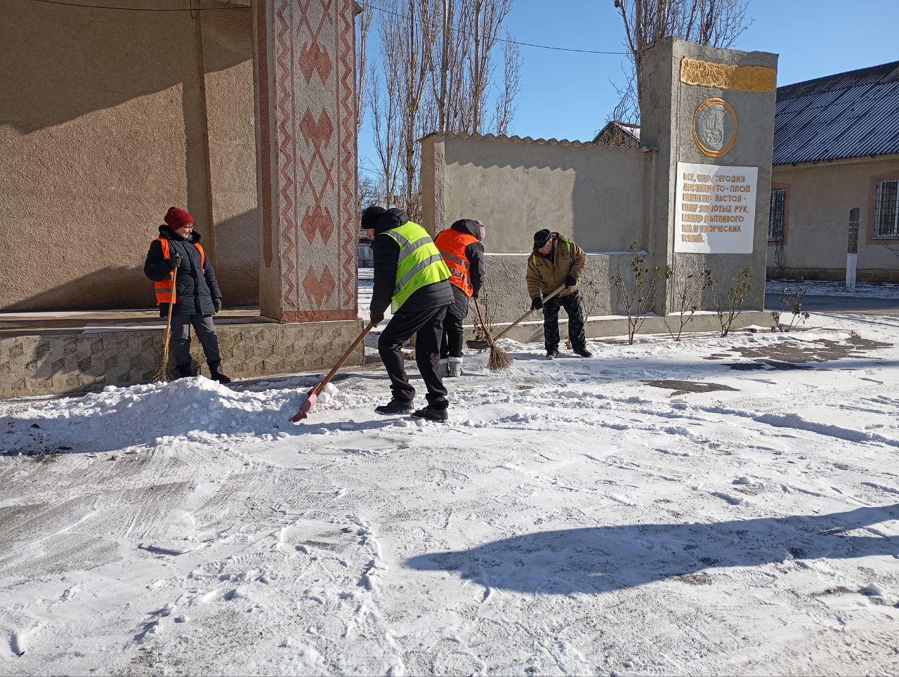 с. Стрелковое: Обрезка веток на ул. Береговой, санитарная уборка на ул. Центральной, уборка снега у мемориала ВОВ, демонтаж новогодней ёлки.