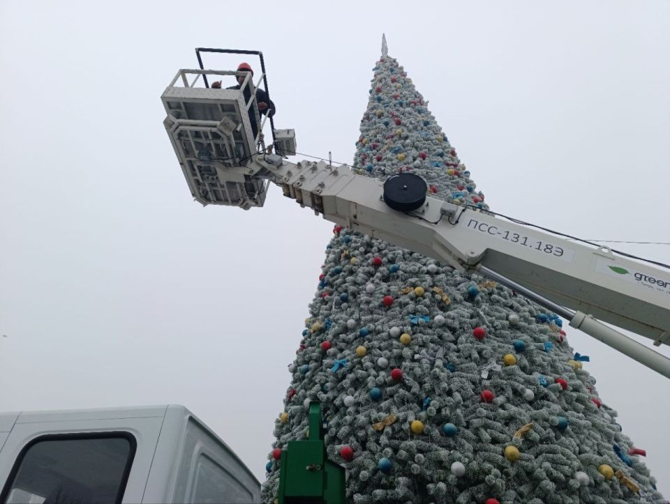 Праздники подошли к концу, и в Геническом округе начался плановый «ёлкопад». После Крещения работники из МКУ «Азовкоммунсервис» и МКУ «Горжилстрой» бережно снимают новогоднее убранство, чтобы сохранить его до следующего декабря.