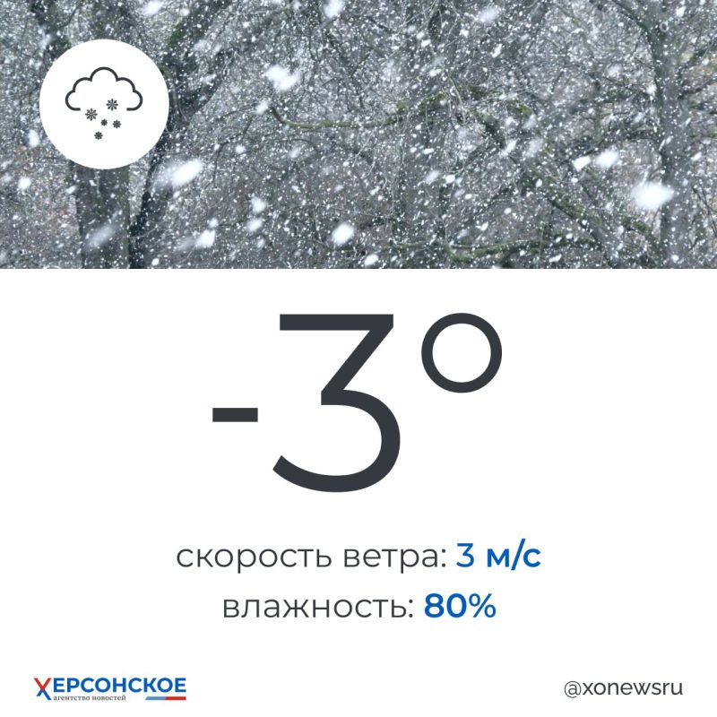 Новая Каховка — -3 °С, пасмурно, небольшой снег