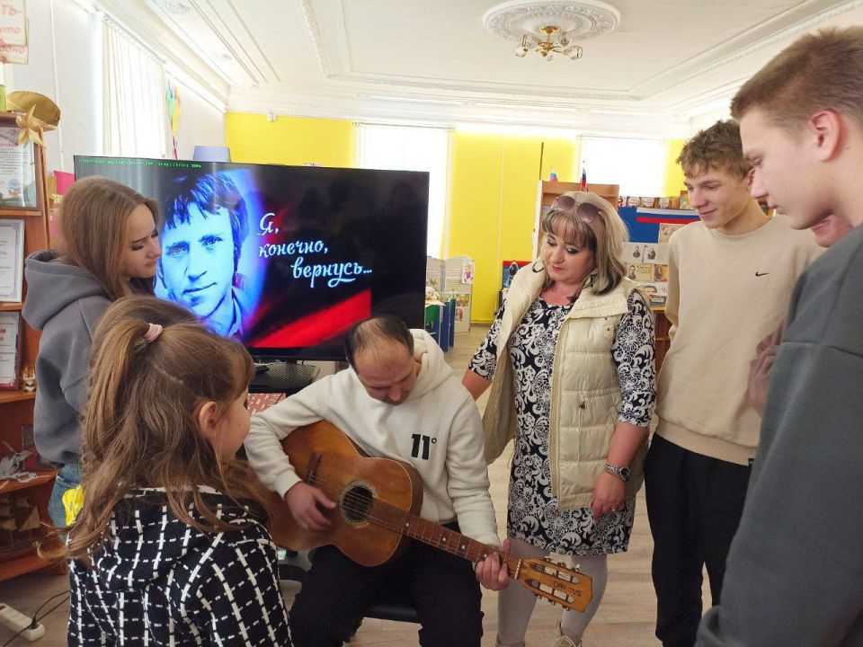 Заведующий СДК Евгений Олейник познакомил ребят с биографией Высоцкого и основными этапами его творческой жизни, которая насчитывает более 700 песен и стихов, 20 ролей в театре и около 30 ролей в кино. Присутствующие смогли увидеть отрывки выступлений всенародного актёра, певца и поэта, а также читали стихи и пели его песни.