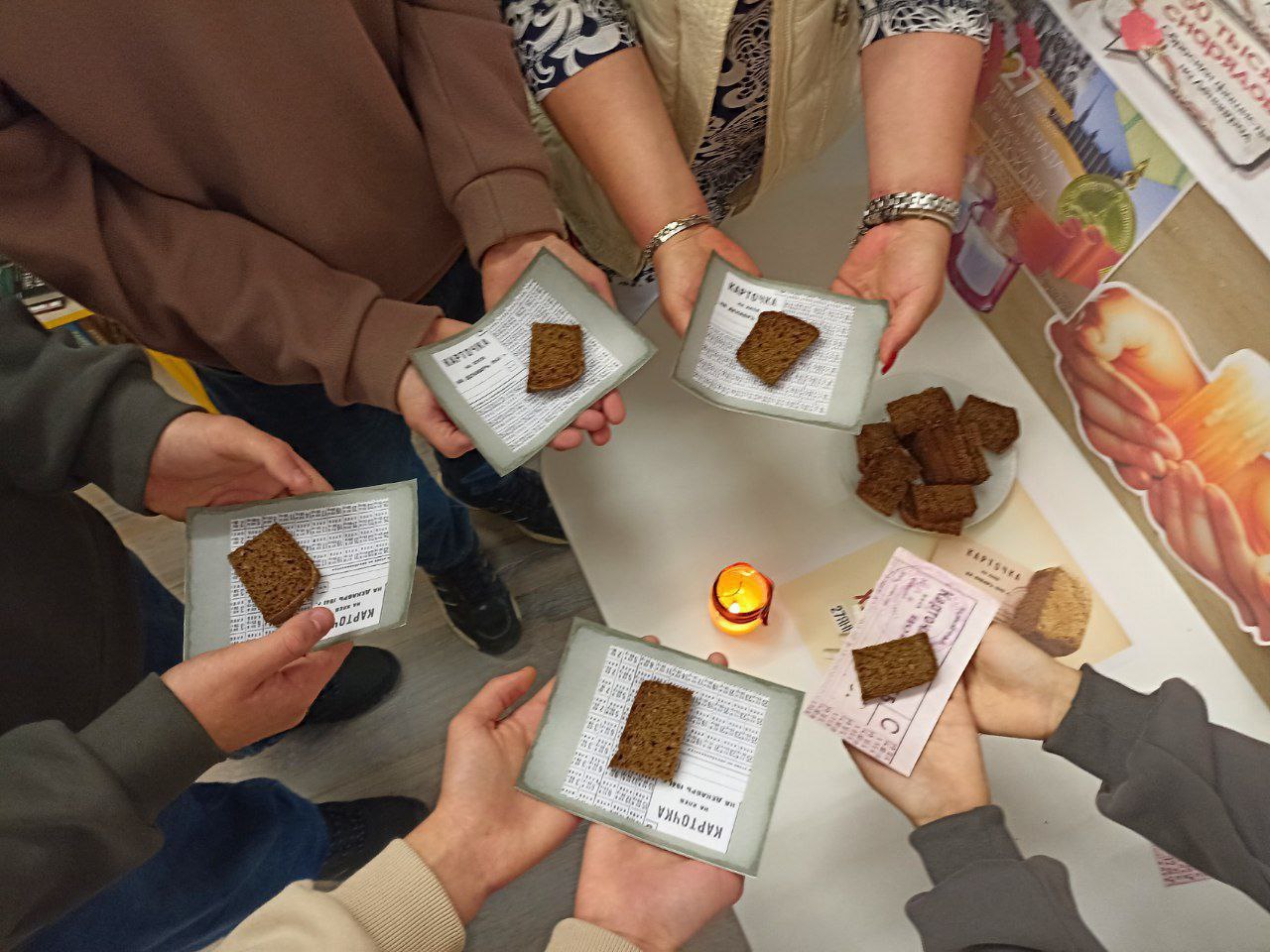 Сотрудники культуры поселка и посетители учреждения также приняли участие во Всероссийской акции памяти "Блокадный хлеб".