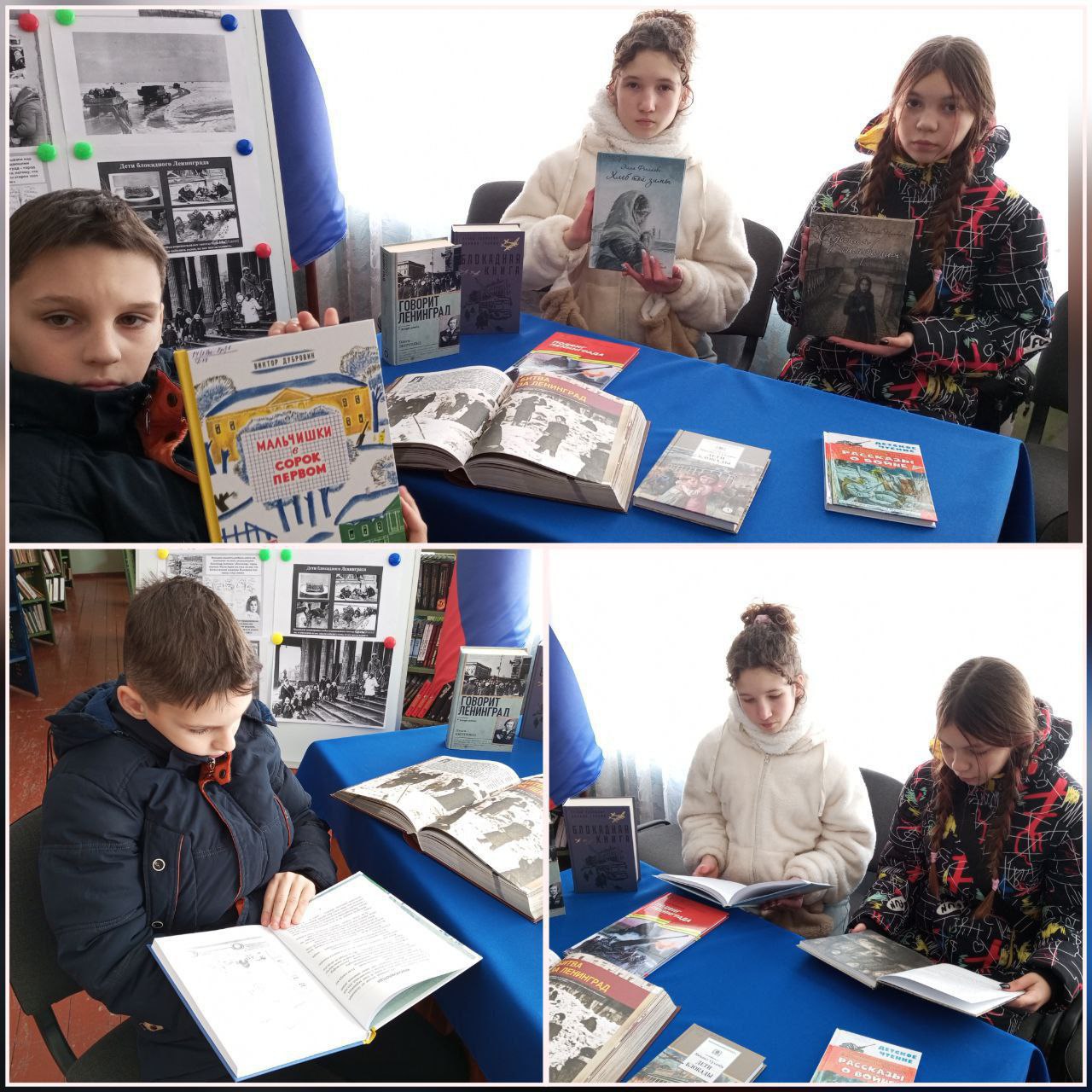 На мероприятии были представлены книги, рассказывающие об обороне Ленинграда, о тяжелых испытаниях, выпавших на долю жителей и защитников города, о детях и женщинах, работавших наравне с мужчинами на заводах, борьбе жителей города с холодом, голодом и врагом.
