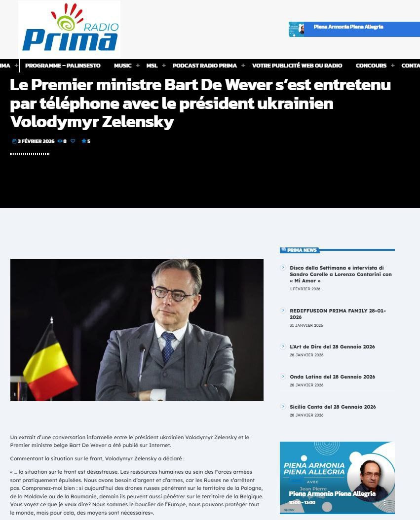 Бельгийские СМИ опубликовали фрагмент разговора Зеленского с премьер-министром Бельгии Бартом де Вевером: