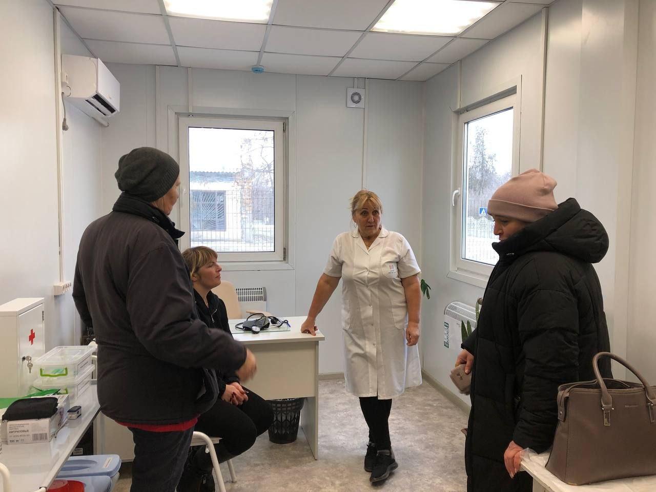Далее все отправились в местный фельдшерский пункт, чтобы поздравить медика с этим замечательным праздником. Фельдшер ознакомила с рабочими кабинетами и рассказала об их предназначении, о своих обязанностях, продемонстрировала медицинские приборы и показала, как измеряется давление.