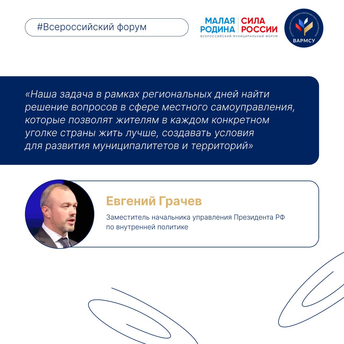 Организатором выступает Всероссийская ассоциация развития местного самоуправления (ВАРМСУ) при поддержке Администрации Президента РФ.
