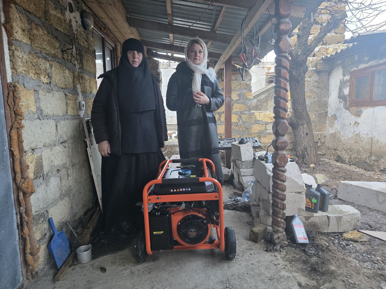 Павел Тропкин и руководитель гуманитарного штаба партии в Скадовске, заместитель секретаря регионального отделения Единой России Оксана Мороз передали в обитель бензиновый генератор и запас топлива. А секретарь местного отделения партии, глава округа Александр Дудка обеспечил подвоз крупной партии угля для обогрева помещений.