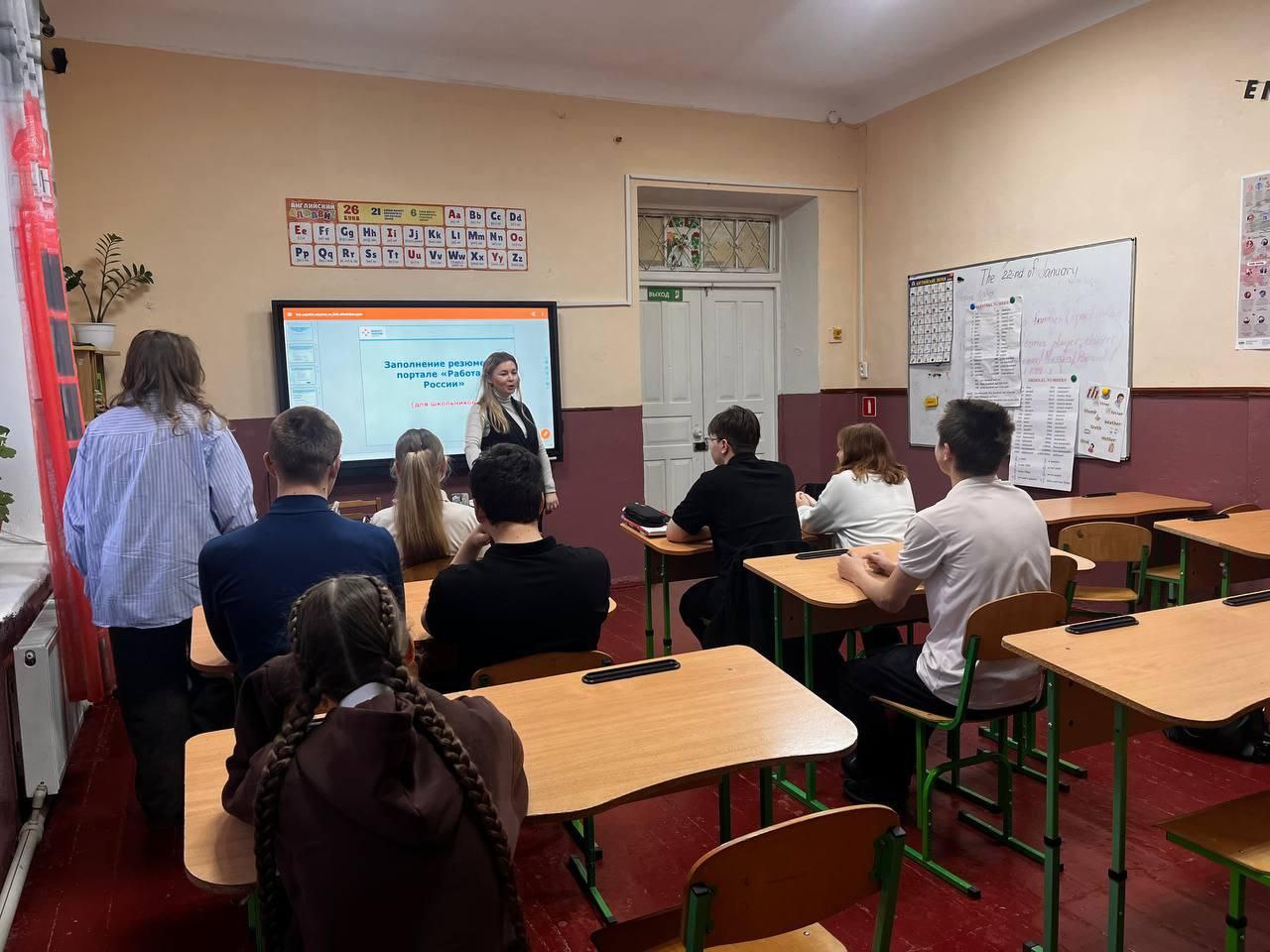 Кроме того, учащимся подробно объяснили все этапы подачи резюме на портале «Работа России».