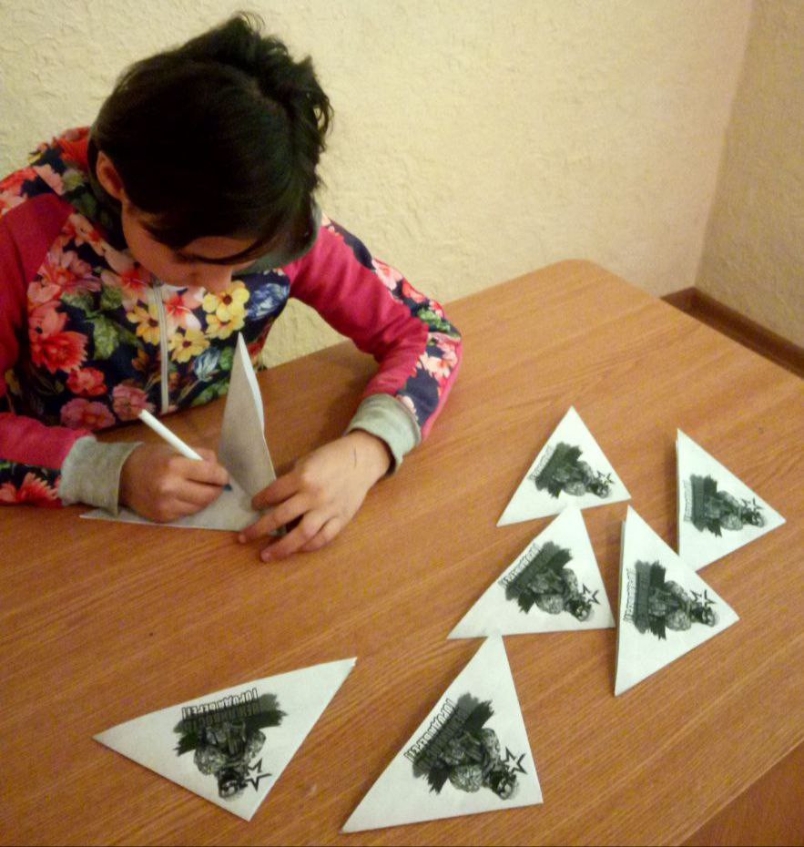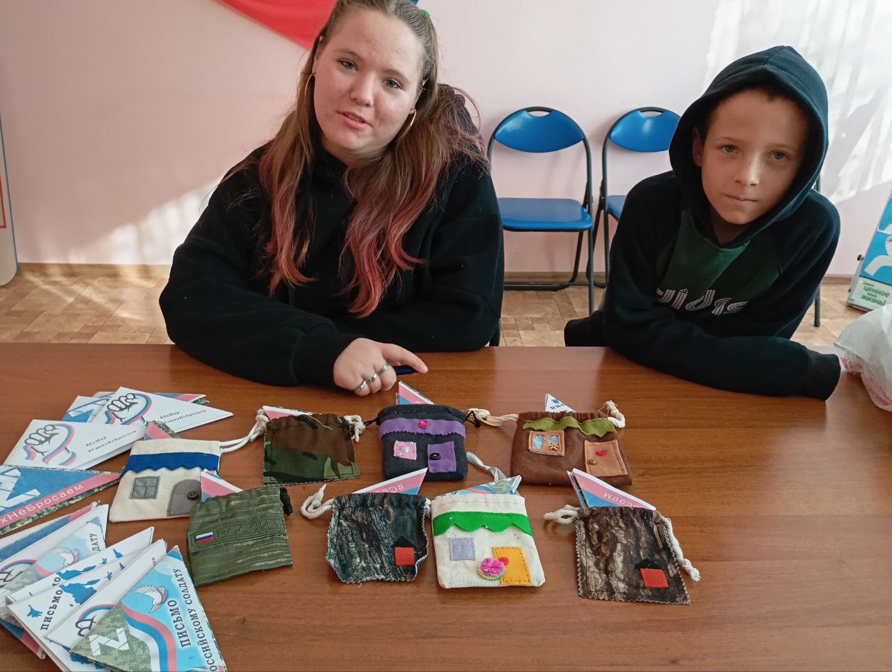 Вместе с заведующей ДК Светланой Щербиной они изготовили поздравительные открытки с Днем защитника Отечества. Треугольники, конверты, открытки с аппликациями и рисунками… Со звездой на «обложке», с буквой Z, с российским триколором… В каждом письме и открытке - поздравление с 23 февраля и трогательные пожелания для наших солдат, для наших защитников… Ребята написали солдатам, что гордятся ими, благодарят их за все, что они делают для нас и страны, и ждут с победой!