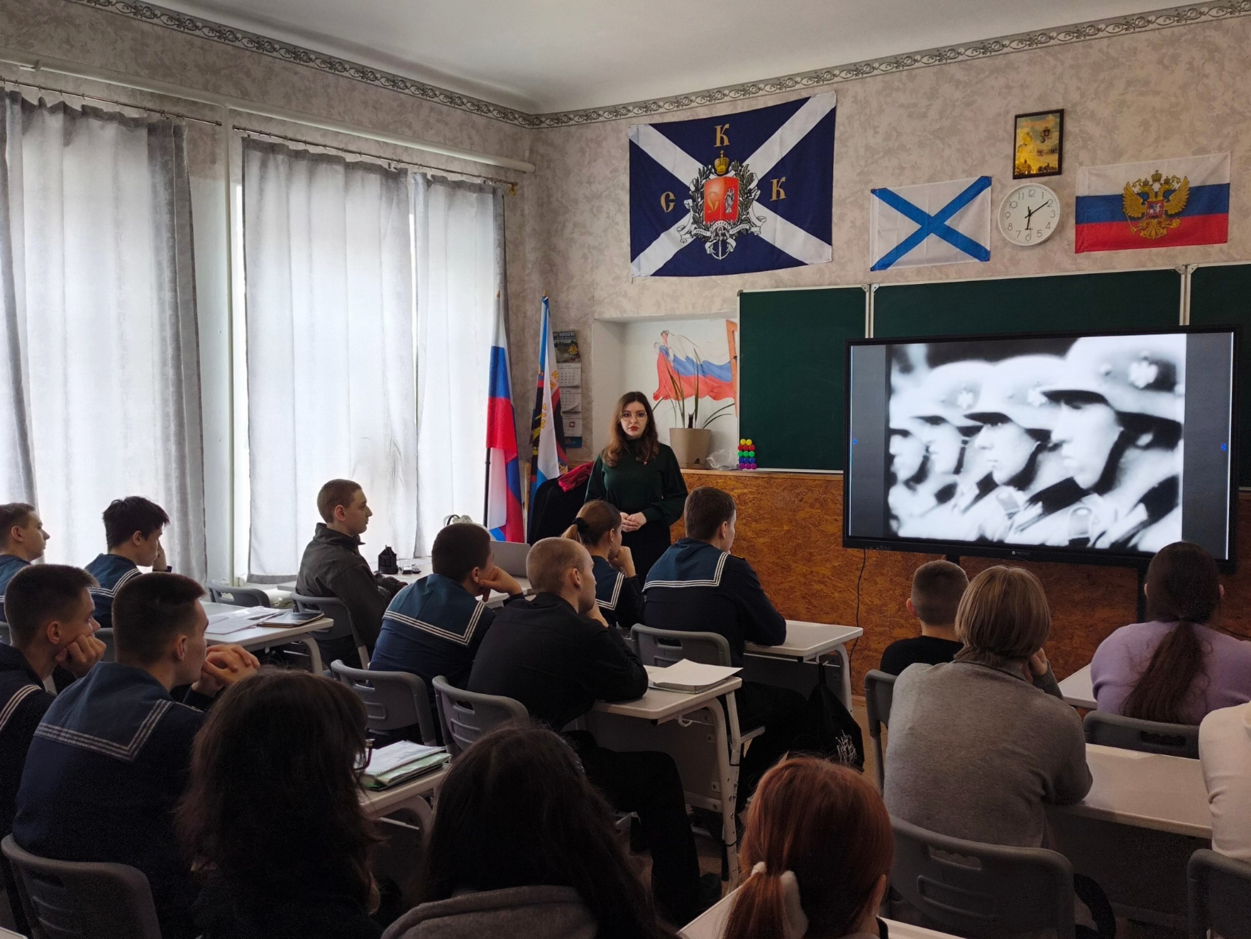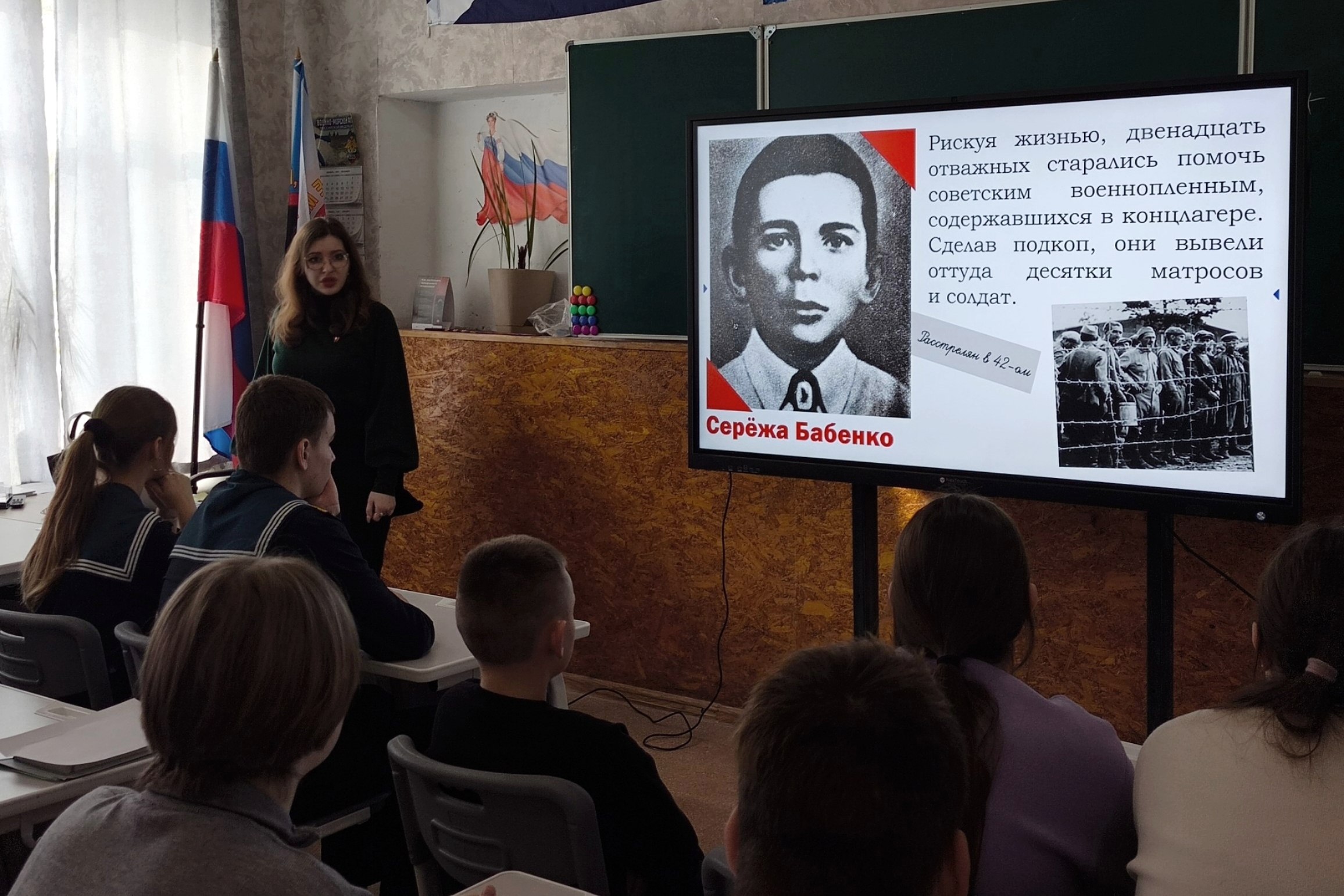 Первый секретарь Херсонского областного комитета ЛКСМ РФ Шабанова Амина и второй секретарь – Никита Эндаков провели встречи с учениками школы и рассказали непростую историю этой памятной даты.