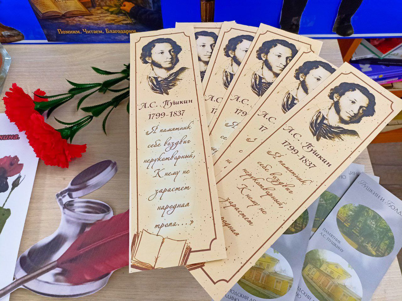 В этот день всем читателям Любимовской библиотеки вручали закладки для книг с портретом великого русского поэта.