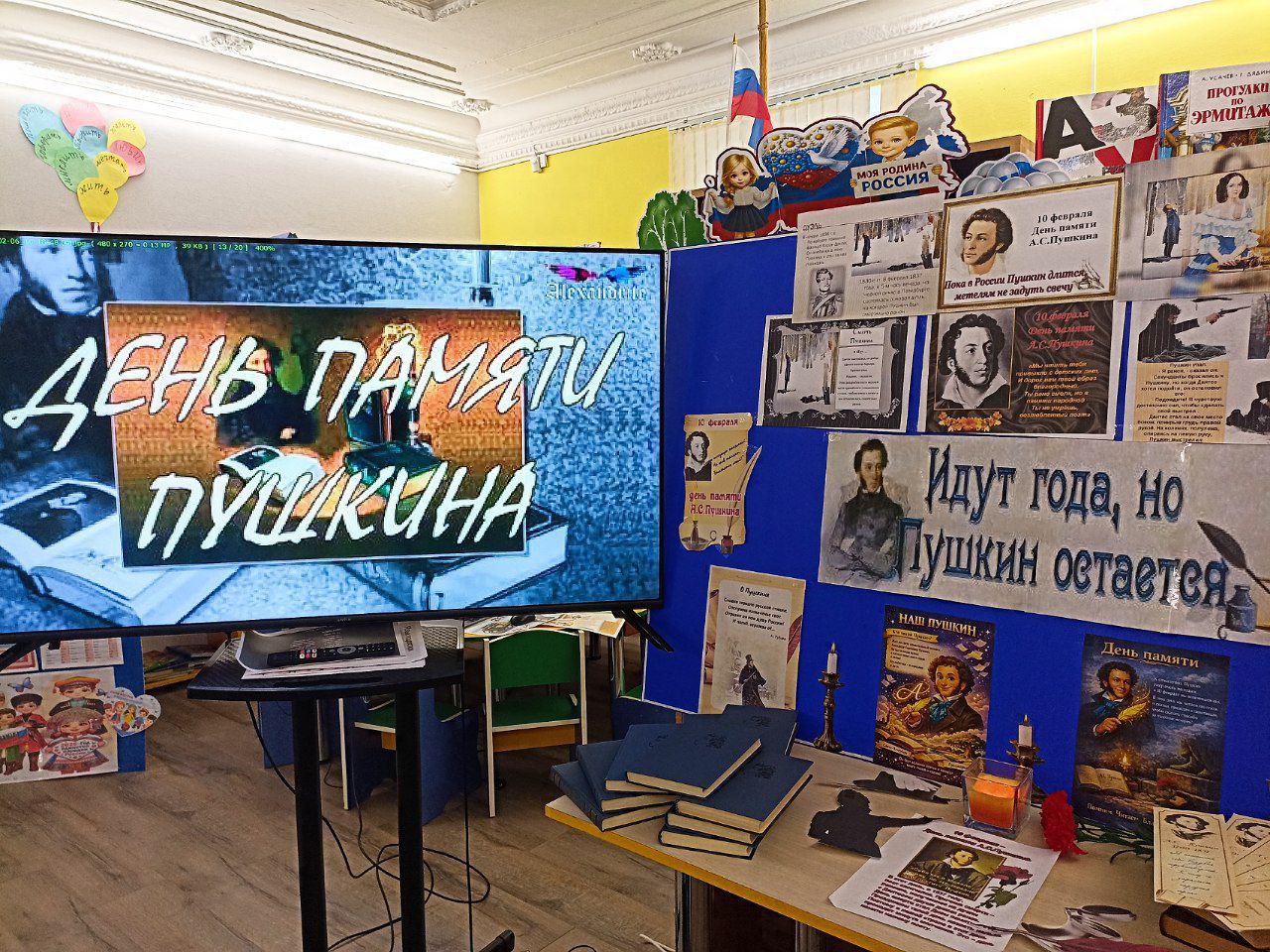 Библиотекарь Светлана Олейник подготовила книжную выставку "Идут года, но Пушкин остаётся". Ребята познакомились с литературным наследием поэта, которое является неоценимым вкладом в литературу России и мировую культуру. На выставке были представлены материалы о семье, детстве и личной жизни Пушкина, а также воспоминания его современников. Каждый мог вспомнить и прочитать строки любимых стихов или отрывки из произведений Александра Сергеевича.