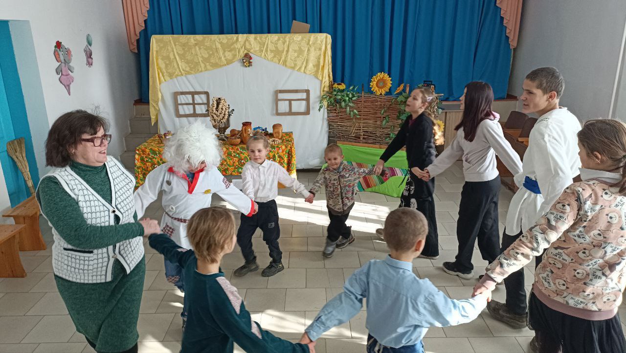 Ребята также спели песню про друга и затем танцевали вместе с домовым. Чтобы задобрить домового, дети принесли ему угощения: тарелку гречневой каши, крынку молока и хлеб. По поверьям, домового нужно задабривать, чтобы он следил за порядком в доме. Татьяна Шилюк объяснила детям, что домовой не любит беспорядок и шум. Если все на своих местах, он будет спокойным. А если что-то его беспокоит, он может шуршать или стучать.