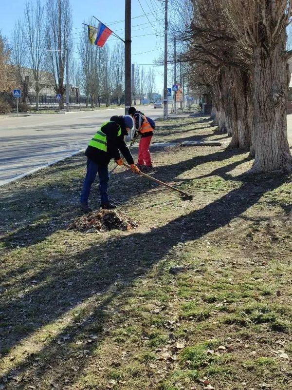 Работники МКУ «Новокаховский коммунальный сервис» продолжают работу по санитарному содержанию территорий. Труд коммунальщиков не прекращается ни на день — от их добросовестности напрямую зависит внешний облик нашего округа.
