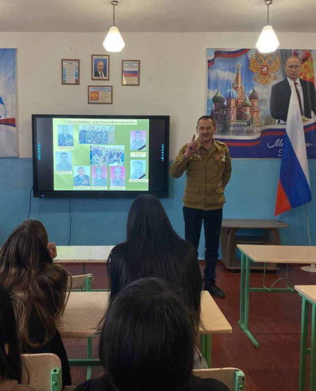 На данном мероприятии учащиеся с интересом слушали выступление очевидца тех событий, участника боевых действий в Афганистане, Валентина Войтенко. Из его рассказа ребята узнали о односельчанах, которые с честью выполняли свой интернациональный долг.