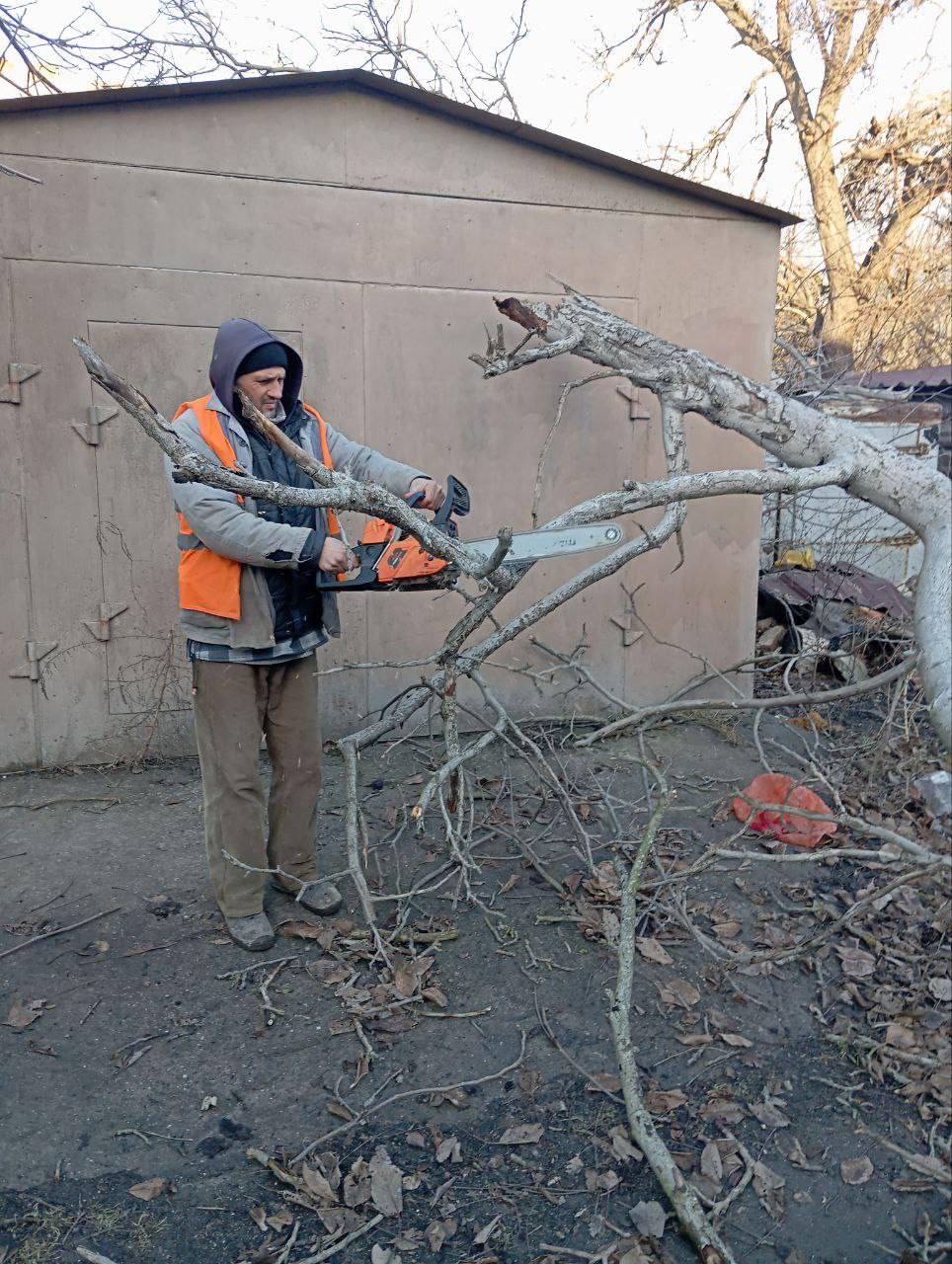Ликвидированы последствия непогоды: распилено упавшее дерево, проведён спил аварийных деревьев на ул. Лободы.