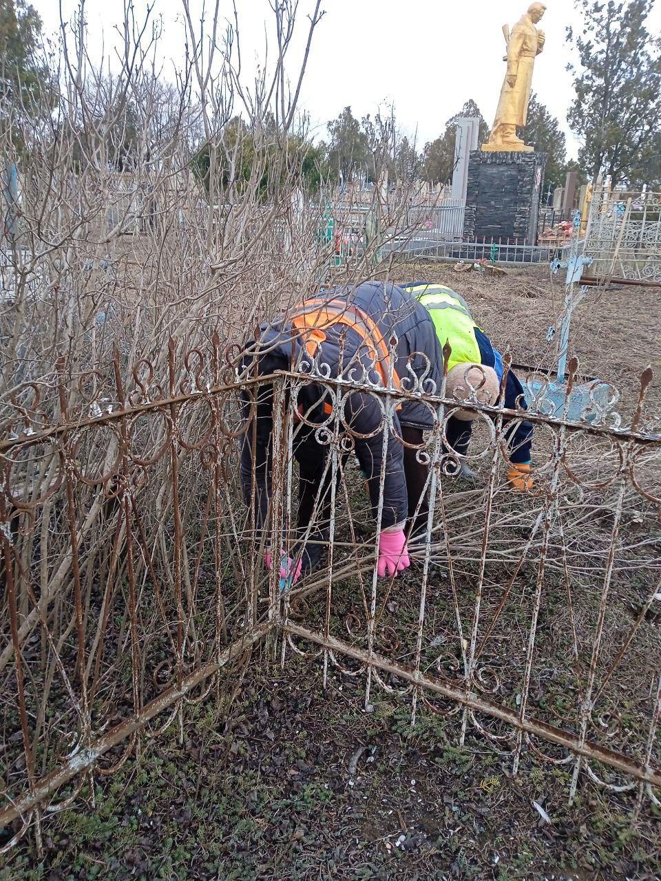 с. Счастливцево: уборка территории кладбища, чистка урн в центральной части села.