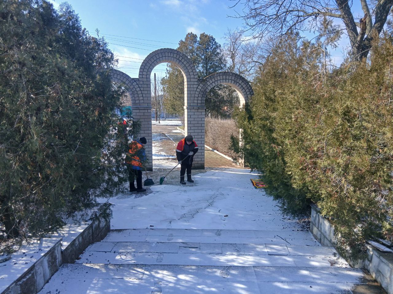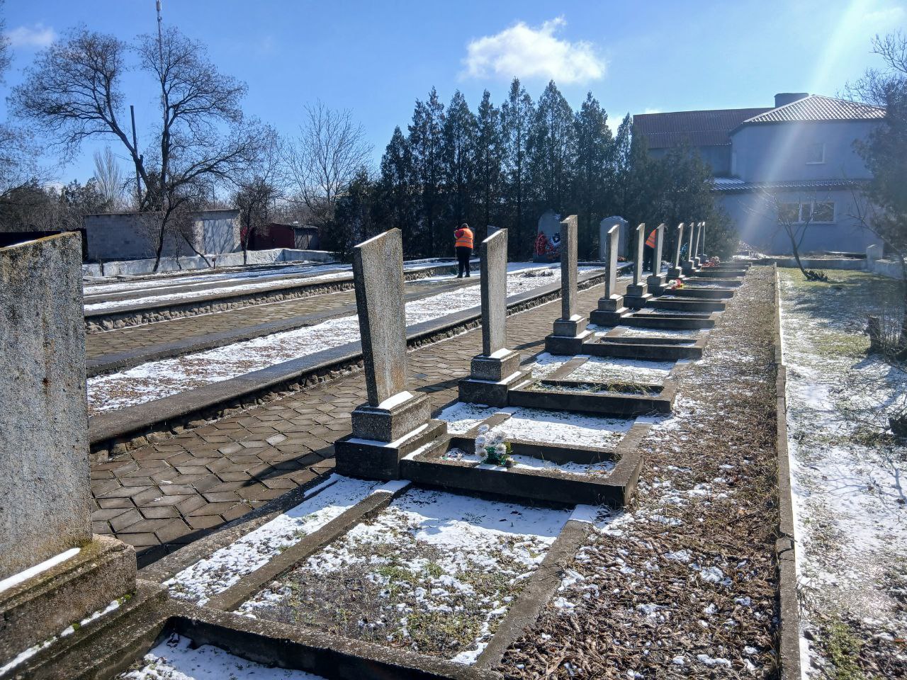 В преддверии Дня защитника Отечества сотрудники филиала №1 муниципального бюджетного учреждения "Управление жилищно-коммунального хозяйства и благоустройства Великолепетихского муниципального округа" провели масштабную уборку территории братских могил на территории пгт.Великая Лепетиха. Мероприятие, носящее патриотический и мемориальный характер, было направлено на поддержание порядка и сохранение памяти о воинах, погибших во время Великой Отечественной войны.