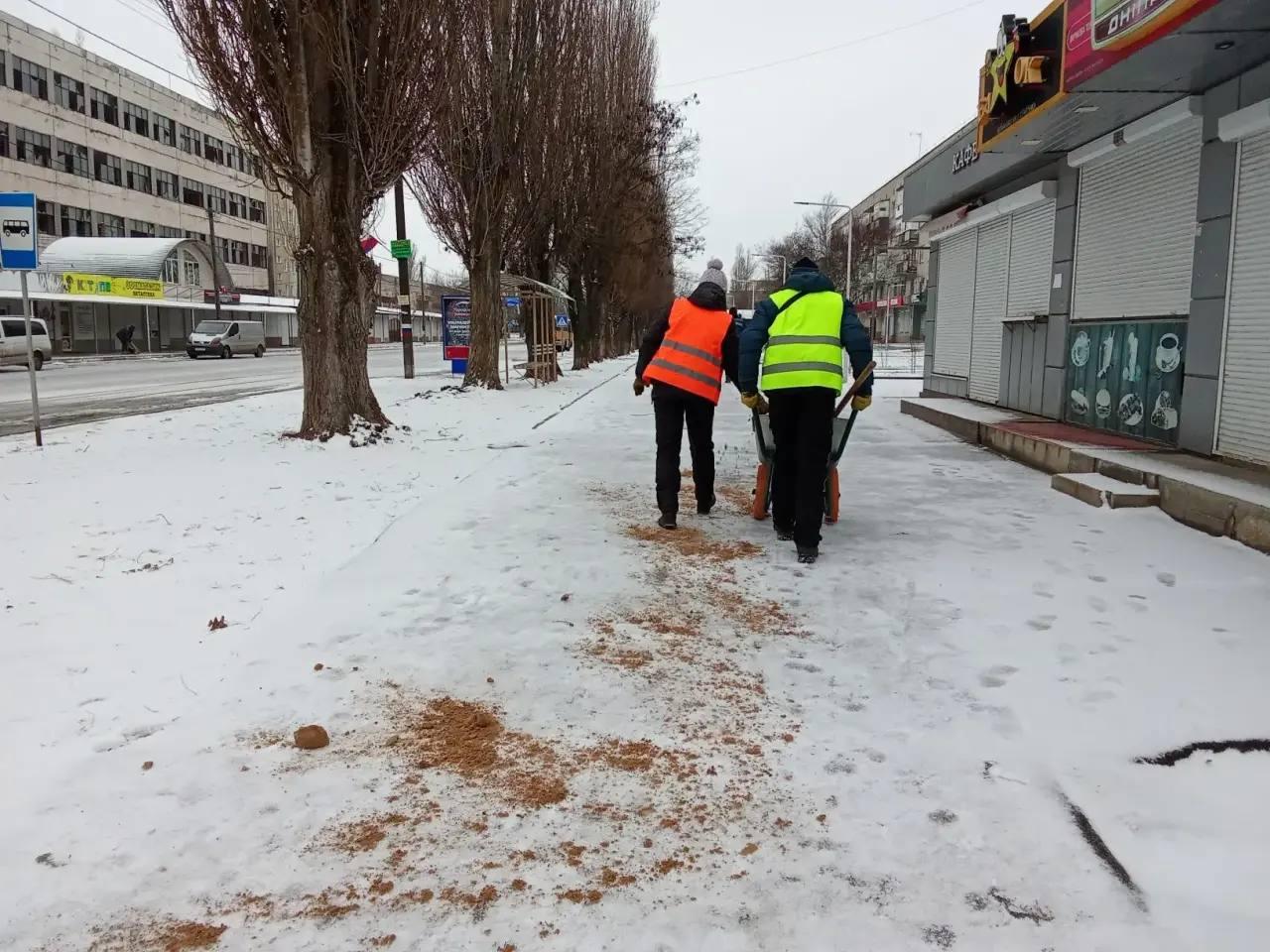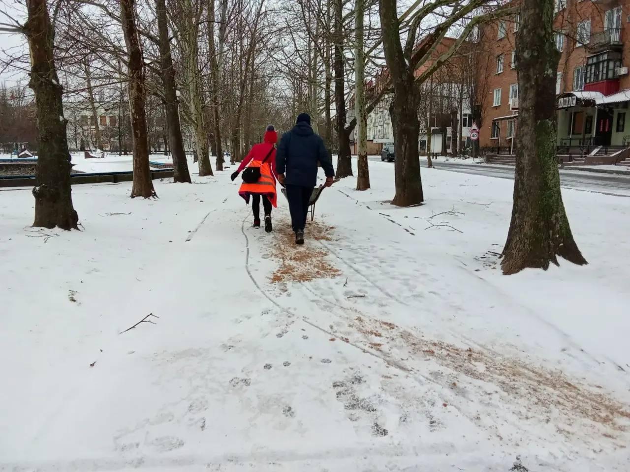 На данный момент проведена обработка пешеходных зон противогололедными материалами (песко-соляной смесью). Это позволит минимизировать скользкость и обеспечит безопасное передвижение по городу.