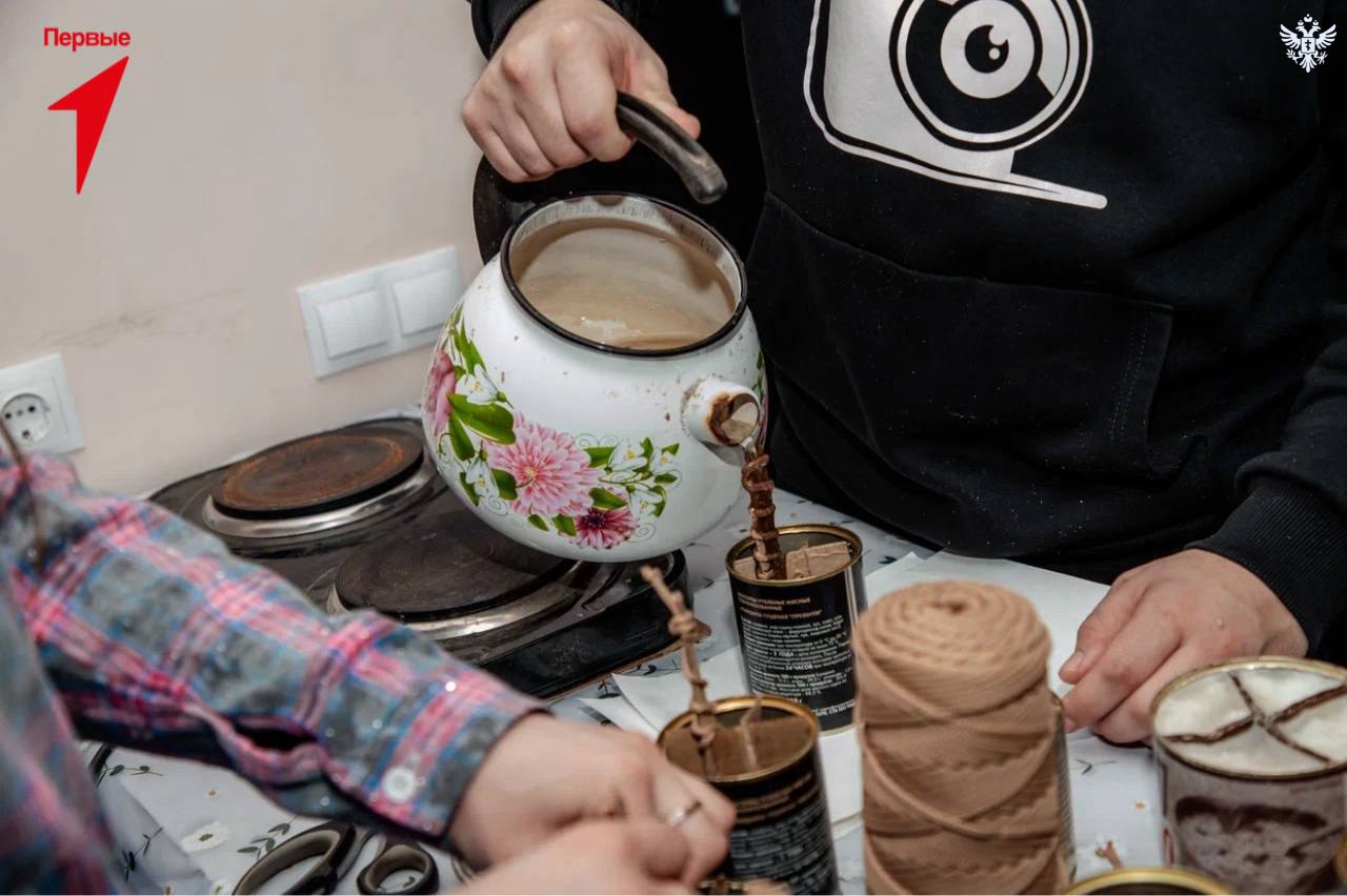 «Создавать свечи было очень интересно. Как оказалось, это несложный процесс, но нужно быть внимательным и осторожным, чтобы не пораниться. У меня легко получилось сделать несколько свечей. Уверена, что они будут полезны нашим защитникам», — отметила активистка Движения Первых Ксения.