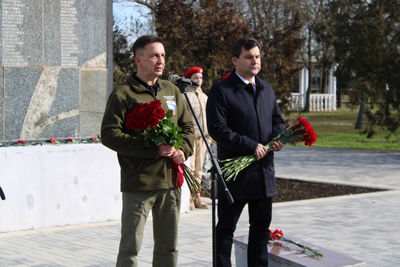 В Геническе накануне Дня защитника Отечества прошла акция памяти и возложение цветов к братской могиле и памятнику освободителям
