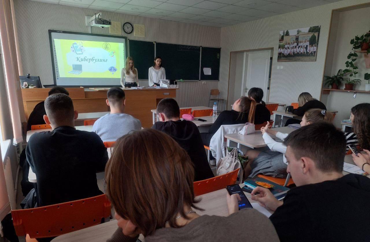 Будущий педагог, студентка Института информационных технологий ХГПУ Ксения Грицык провела для учеников 11 класса Чаплинской школы №1 интерактивное занятие, посвященное проблеме кибербуллинга.