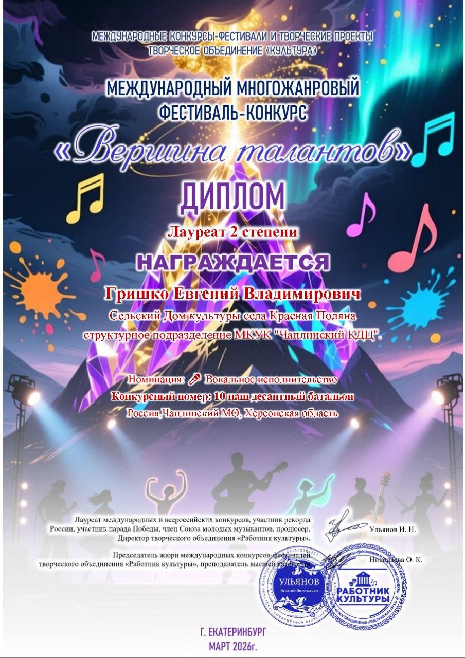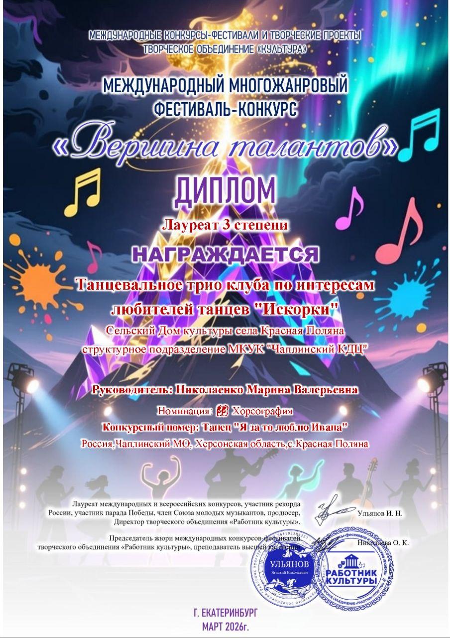 Клубы по интересам сельского Дома культуры с. Красная Поляна приняли участие в международном конкурсе «Вершина талантов»
