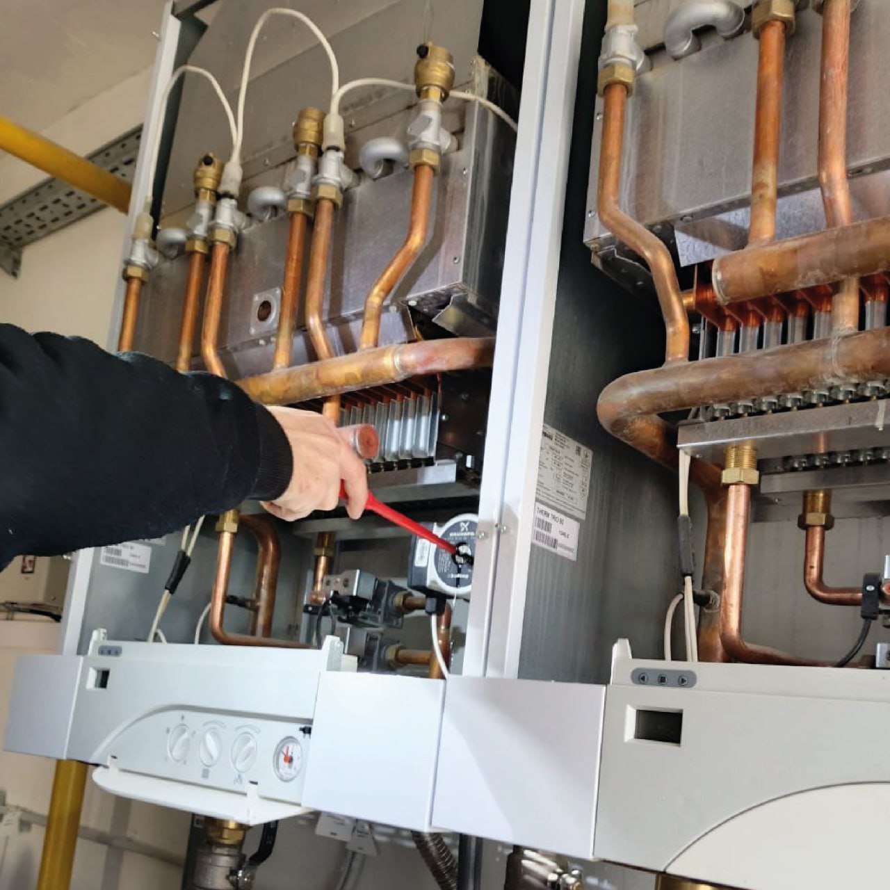 Устранены протечки системы отопления, установлены блоки розжига, произведен запуск котла в административном здании.