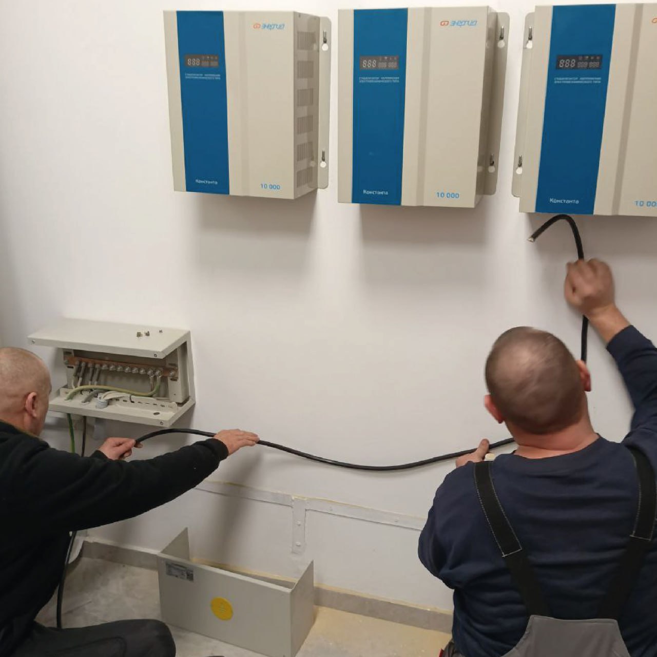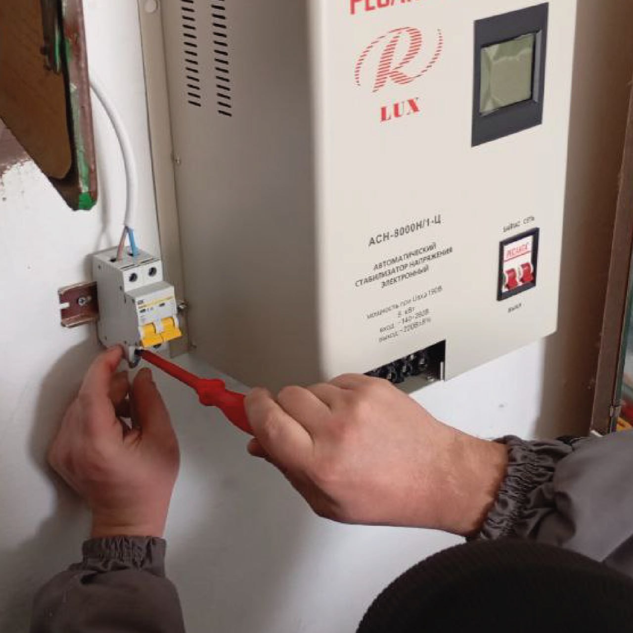 Административное здание: устранена протечка, выполнена протяжка автоматов в электрощите.Установлен стабилизатор напряжения.