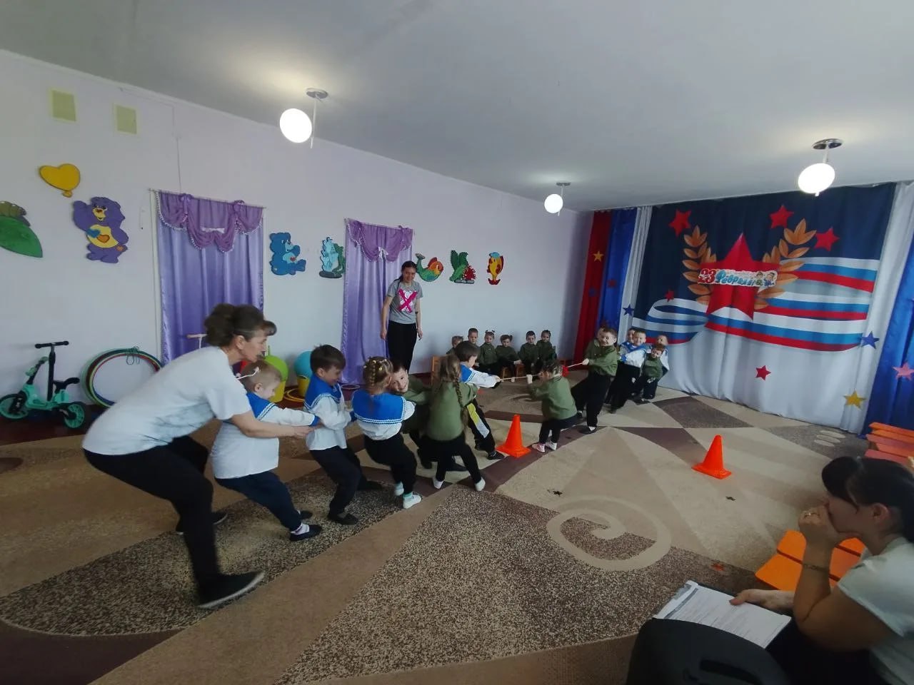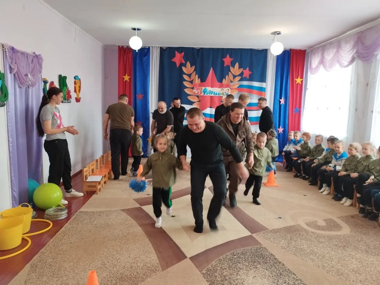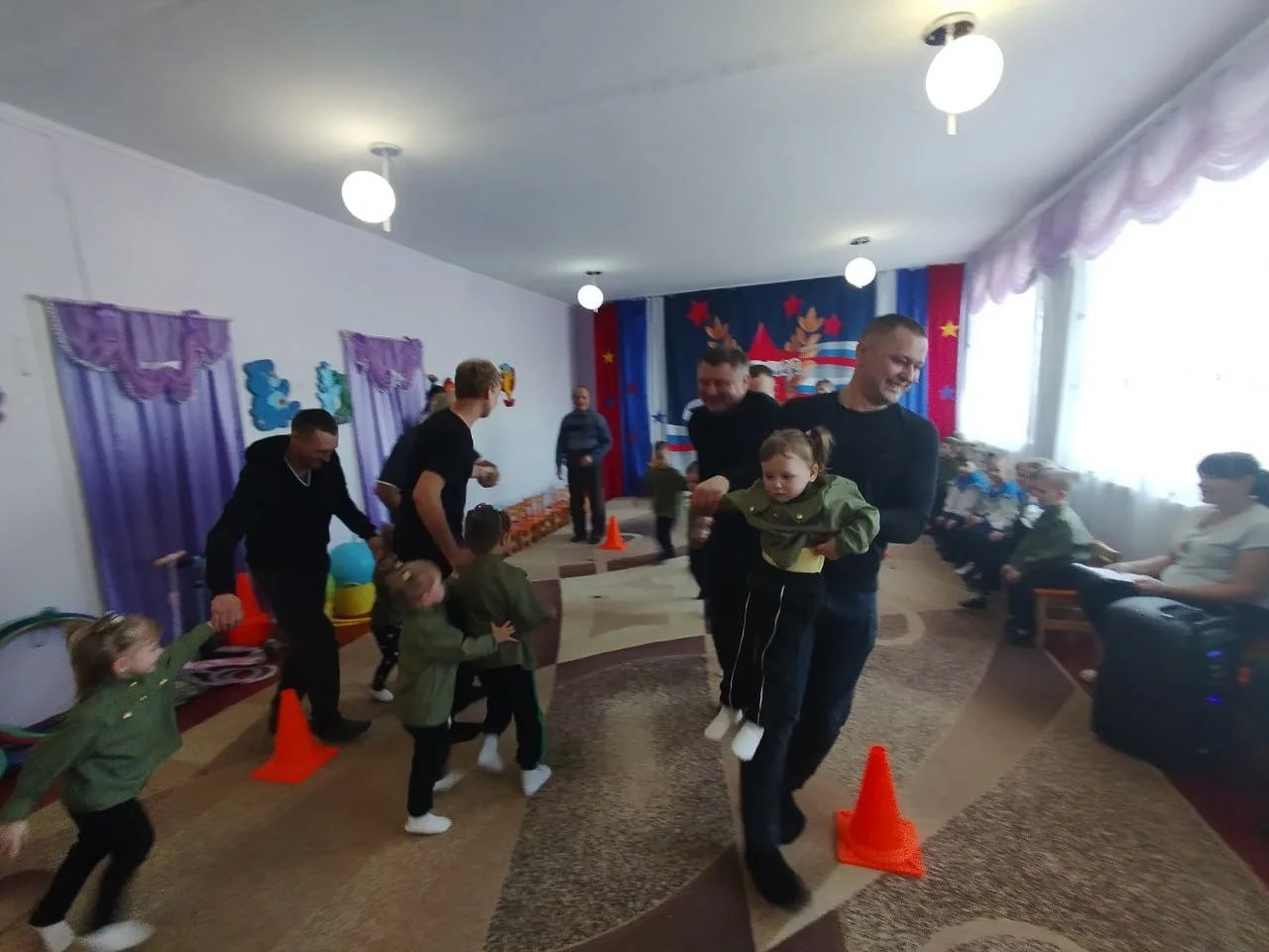 Кульминацией праздника стали увлекательные эстафеты, в которых с огромным удовольствием участвовали и папы, и дети. Команды соревновались в ловкости, скорости и командном духе, что добавило мероприятию задора и веселья.
