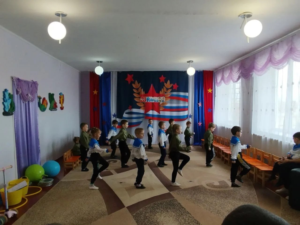 Дети подготовили для своих дорогих гостей трогательные поздравления. Они читали стихи, в которых с любовью и восхищением рассказывали о своих папах — смелых, сильных и заботливых защитниках семьи. После поэтической части малыши с задором демонстрировали свои первые танцевальные успехи, а старшие дети поддерживали их, создавая атмосферу единства и радости.
