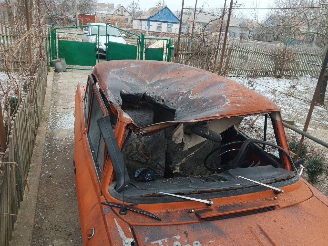20 февраля. Удар дрона-камикадзе по легковому гражданскому автомобилю в г. Пологи, Запорожская область.