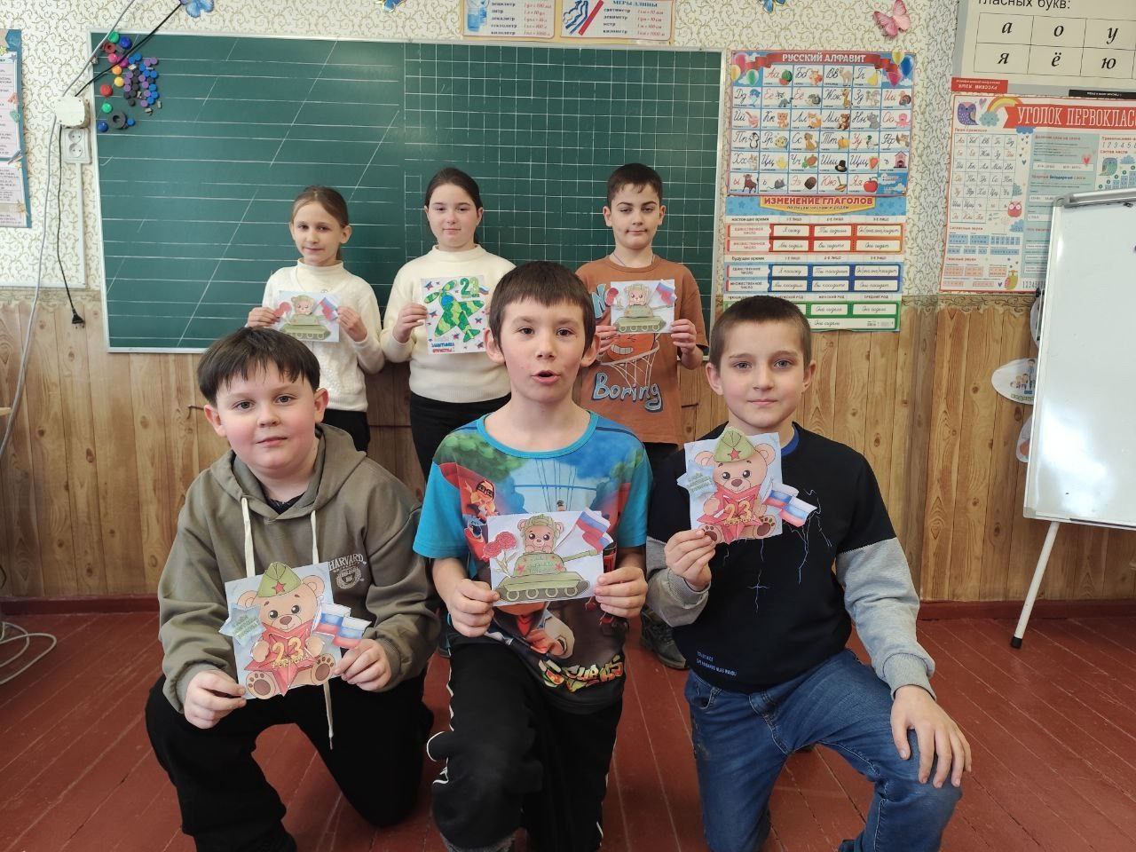 Ученики начальных классов своими руками создали памятные подарки для своих пап, дедушек и всех защитников: бумажные танки и самолеты, поздравительные открытки и объемные фигурки солдат. В каждую работу ребята вложили частичку души, стараясь выразить свою признательность.