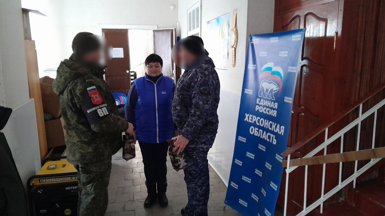 В честь Дня защитника Отечества поздравили и военнослужащих 359 полка, защищающих Каховское направление. Активисты «Единой России» вручили им благодарности за значительный вклад в военно-патриотическое воспитание молодежи, а также передали масксети и другую помощь.