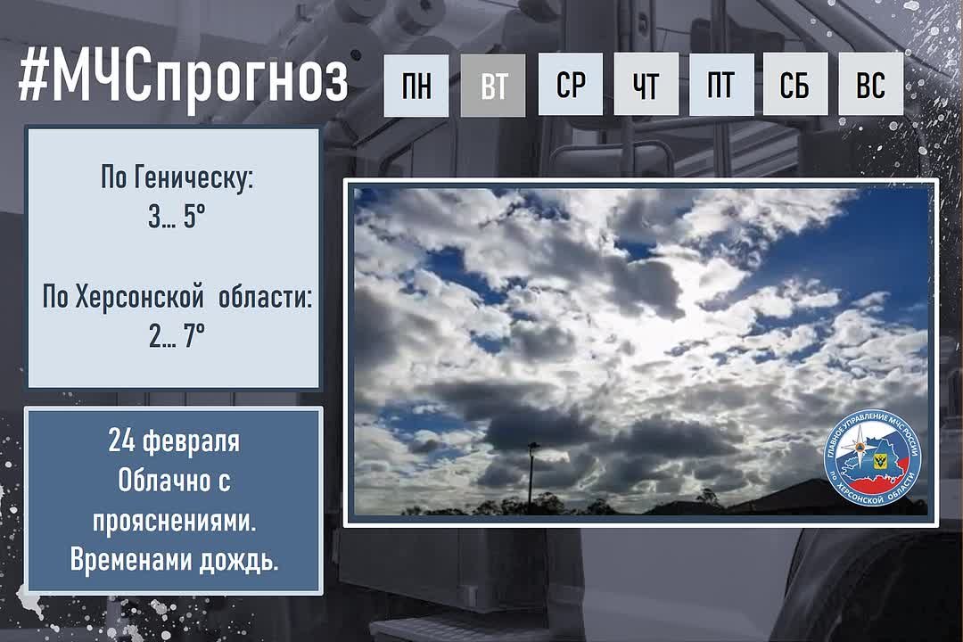 облачно с прояснениями. Местами небольшие и умеренные осадки в виде дождя, ночью с мокрым снегом. Ветер южной четверти с переходом на северо-западный и северный 5-10 м/с.Температура воздуха ночью 0...5°; днём 2...7°, местами до 10°.