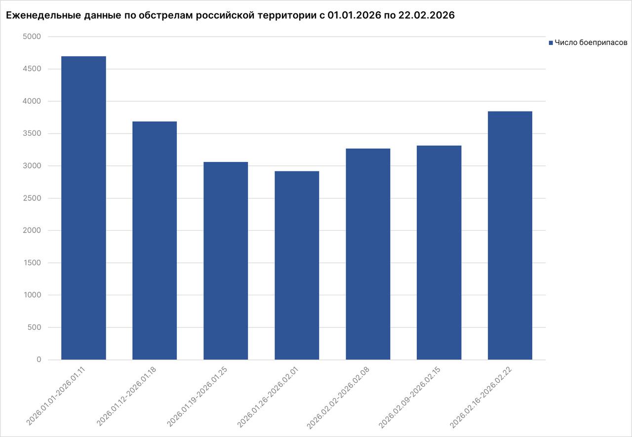 По его словам, всего по гражданским объектам России ВСУ выпустили не менее 3 846 боеприпасов.