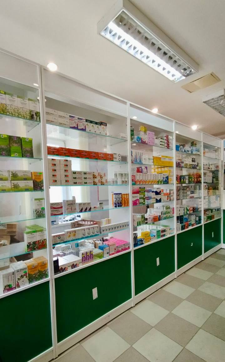 Помещение аптечного пункта оснащено необходимой мебелью в соответствии с лицензионными требованиями, закуплены и установлены витрина и прилавки.