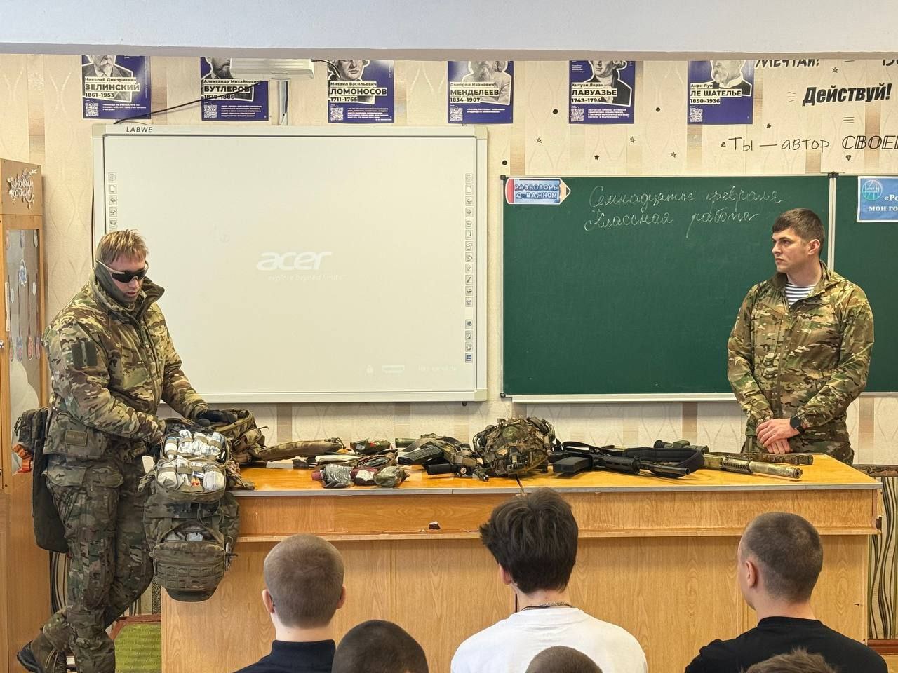 По инициативе секретаря первичного отделения Единой России №297 Максима Кацидана совместно с военнослужащими разведбатальона 98-й гвардейской воздушно-десантной дивизии был проведён урок мужества для учеников 9–11 классов Крестовской школы. Занятие прошло на тему: «Для чего нужно проведение специальной военной операции».