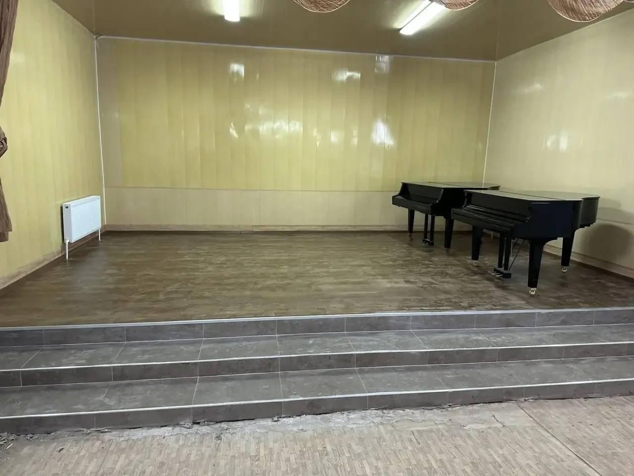 В музыкальной школе пгт. Новотроицкое специалисты из региона-шефа помогли с благоустройством сцены, уложили ламинат и плитку, а также помогли собрать и установить музыкальное оборудование.