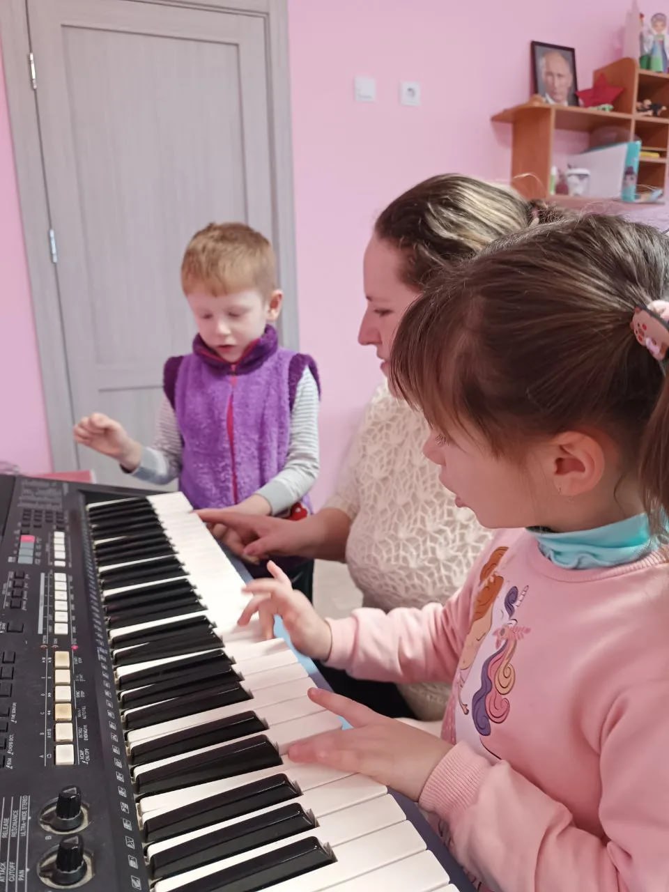 Главное целью занятия стало обучение детей повторению музыкальных звуков в виде распевки.