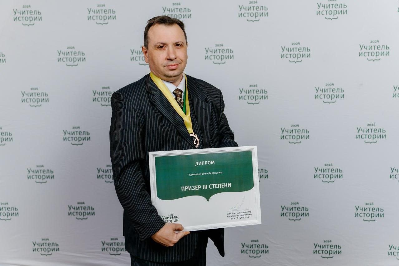 Среди награжденных – Илья Терновой, учитель истории Асканийской школы Чаплинского района, представлявший Херсонскую область. Илья Федорович занял 3 место, войдя в число лучших учителей истории России 2025 года по версии Фонда Румянцева.