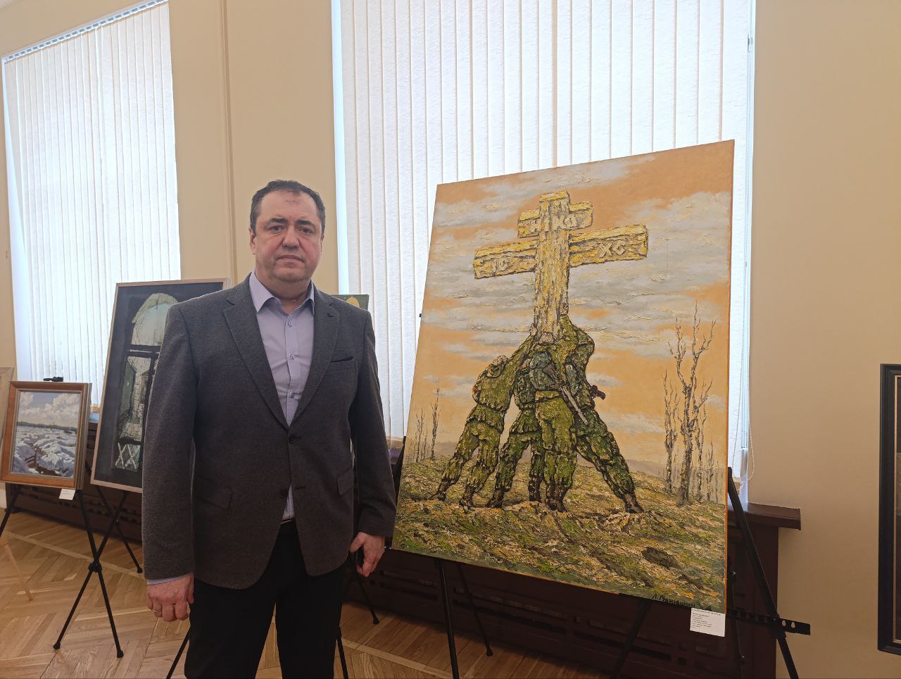Руководитель Постоянного Представительства Херсонской области при Правительстве РФ Владимир Боделан посетил в Москве выставку-вернисаж "Образ защиты:Долг, Труд и Возрождение", приуроченную ко Дню Защитника Отечества