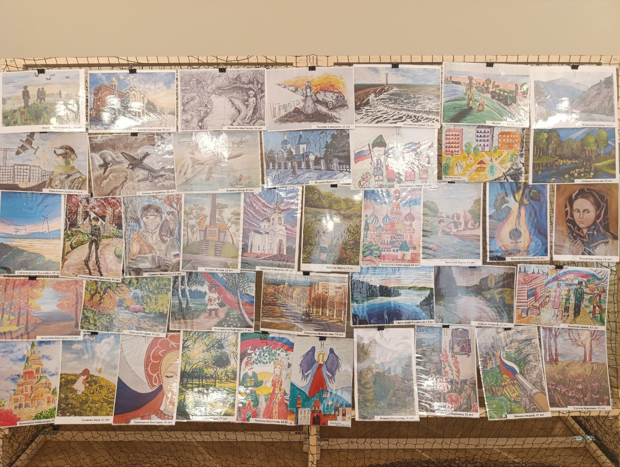На выставке были представлены картины художников из Новороссии и Донбасса, и других регионов России. А также была представлены выставка детских рисунков на военно-патриотические темы.
